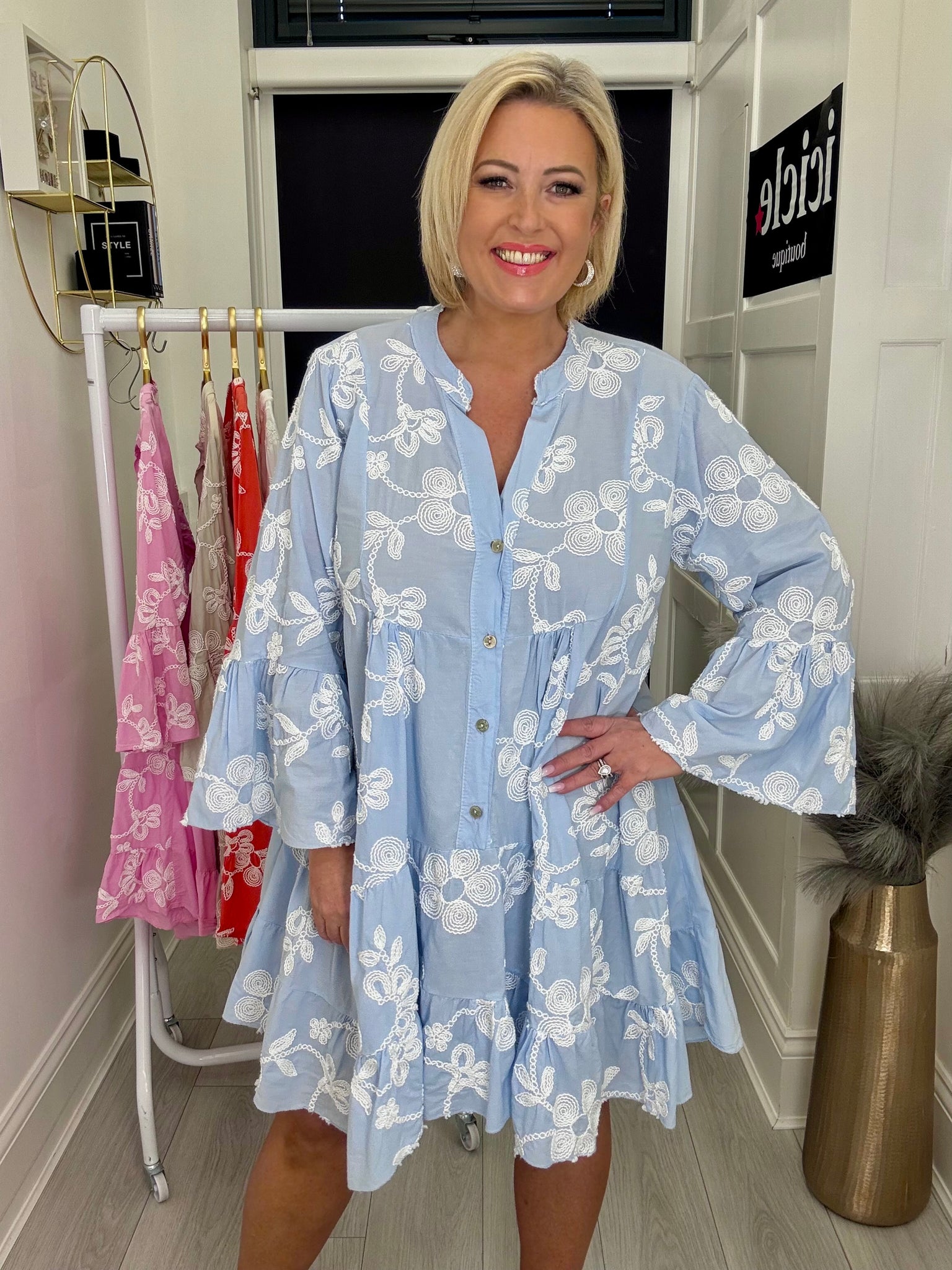 Gorgeous embroidered cotton swing dress.