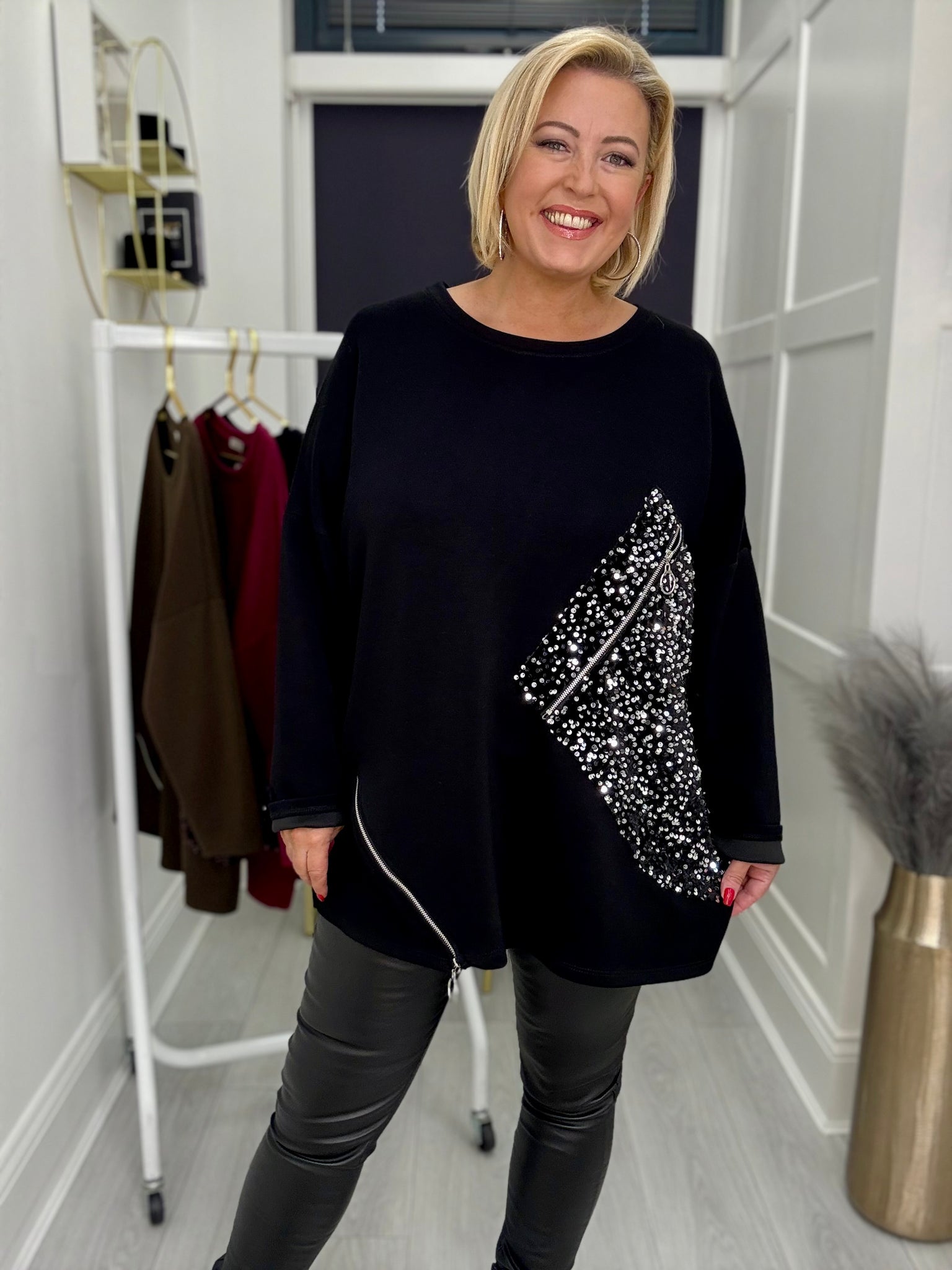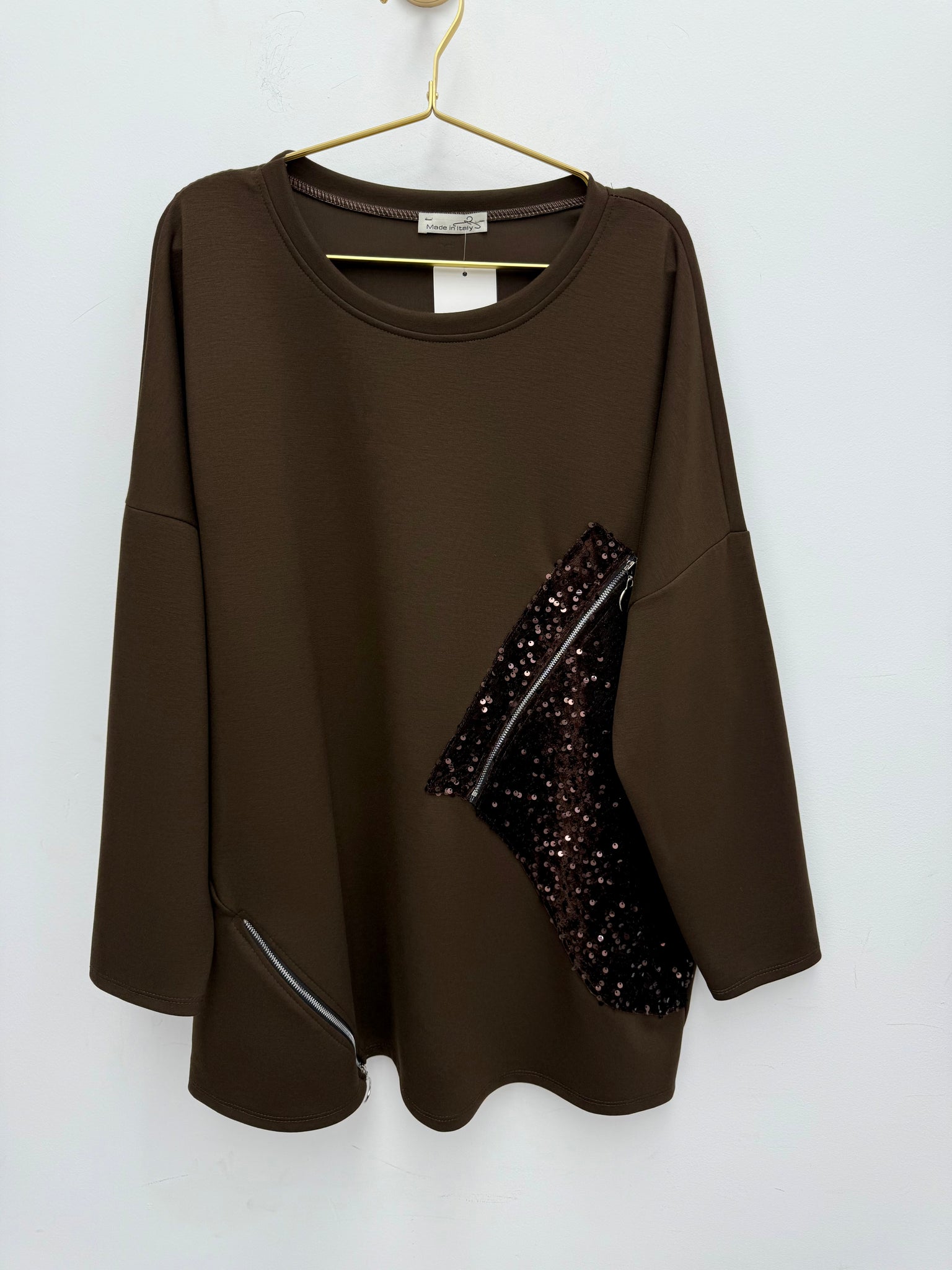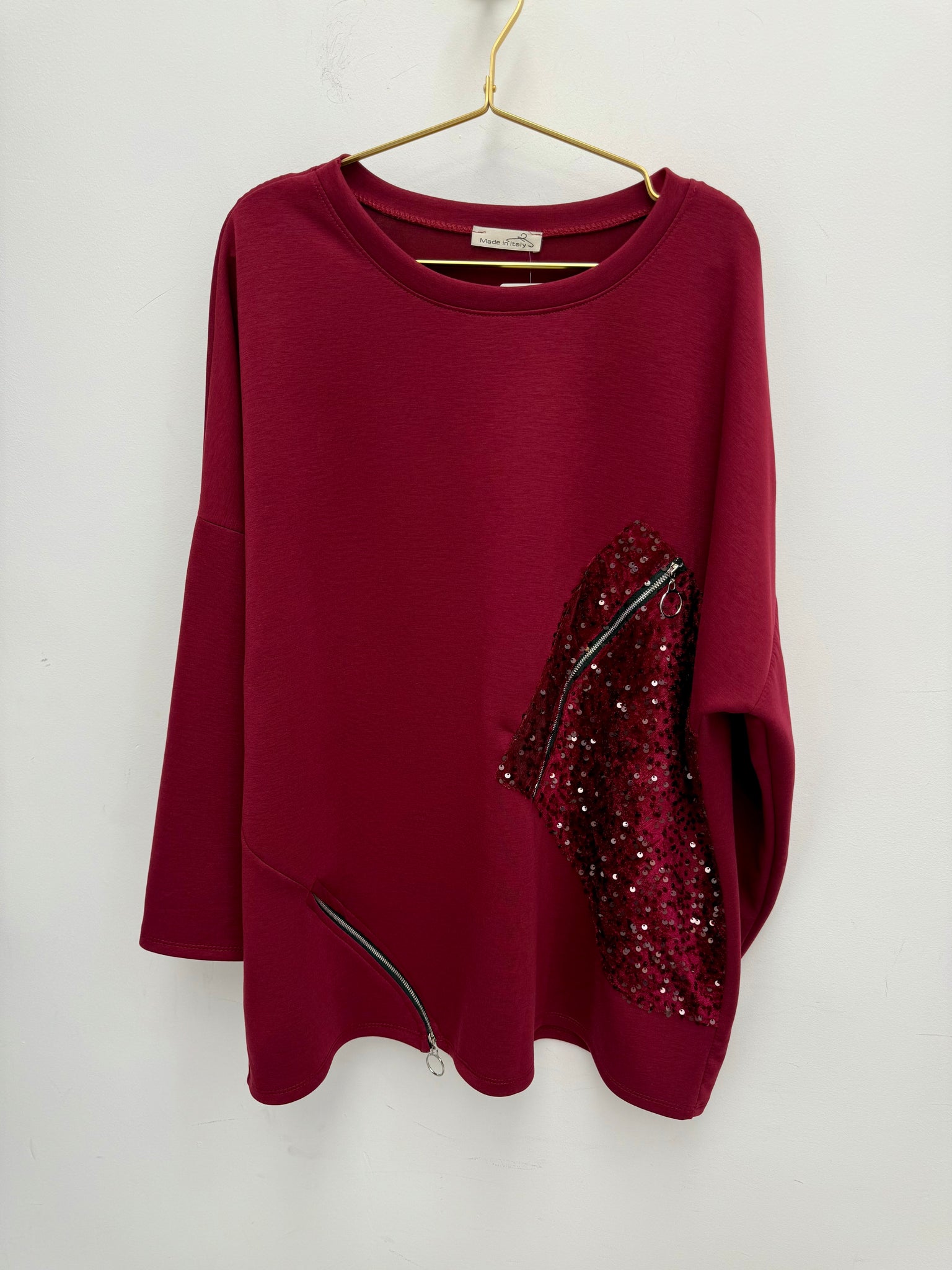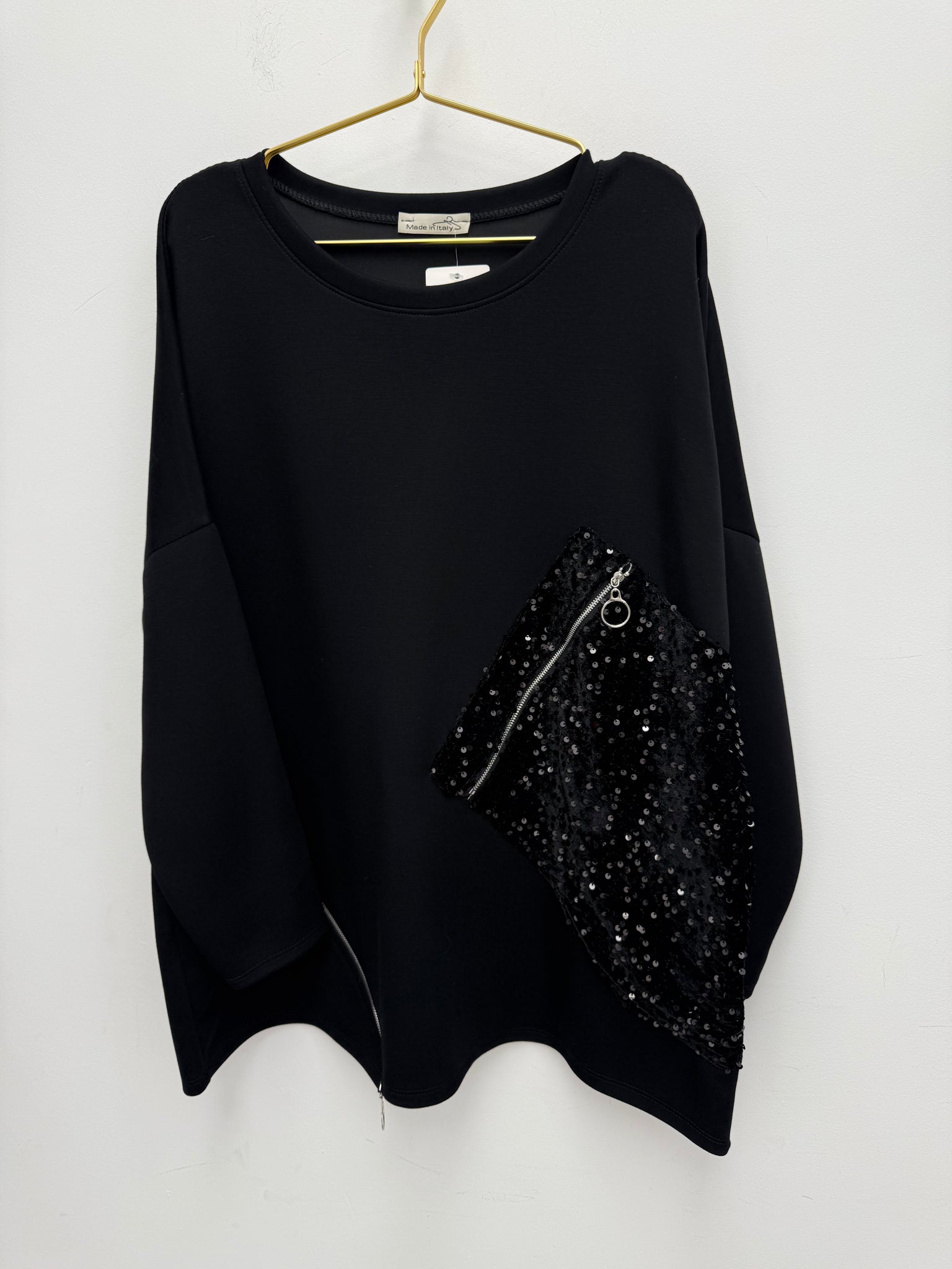 Gorgeous soft silky smooth stretch (light scuba fabric) top with functional sequin pocket!