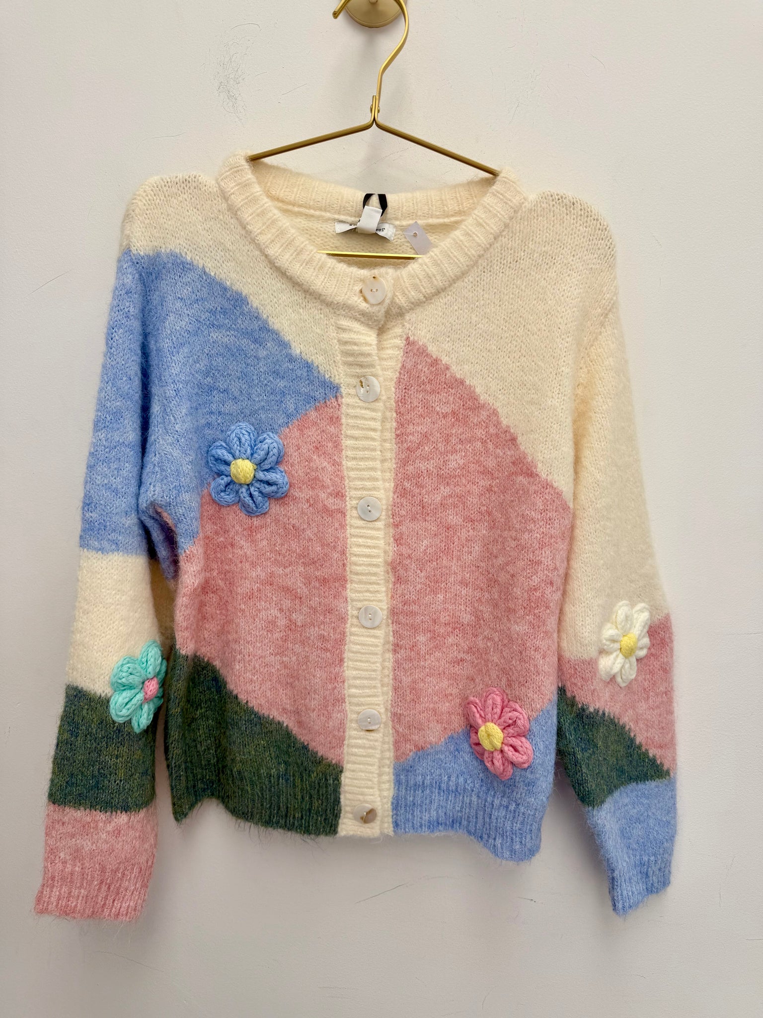 Beautiful cosy cardigan with stunning appliqué daisies.