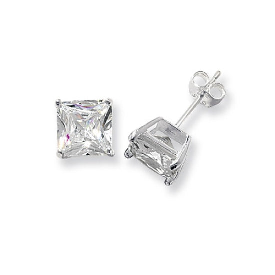 Beautiful Sterling silver stud earrings with square cubic zirconia stones.