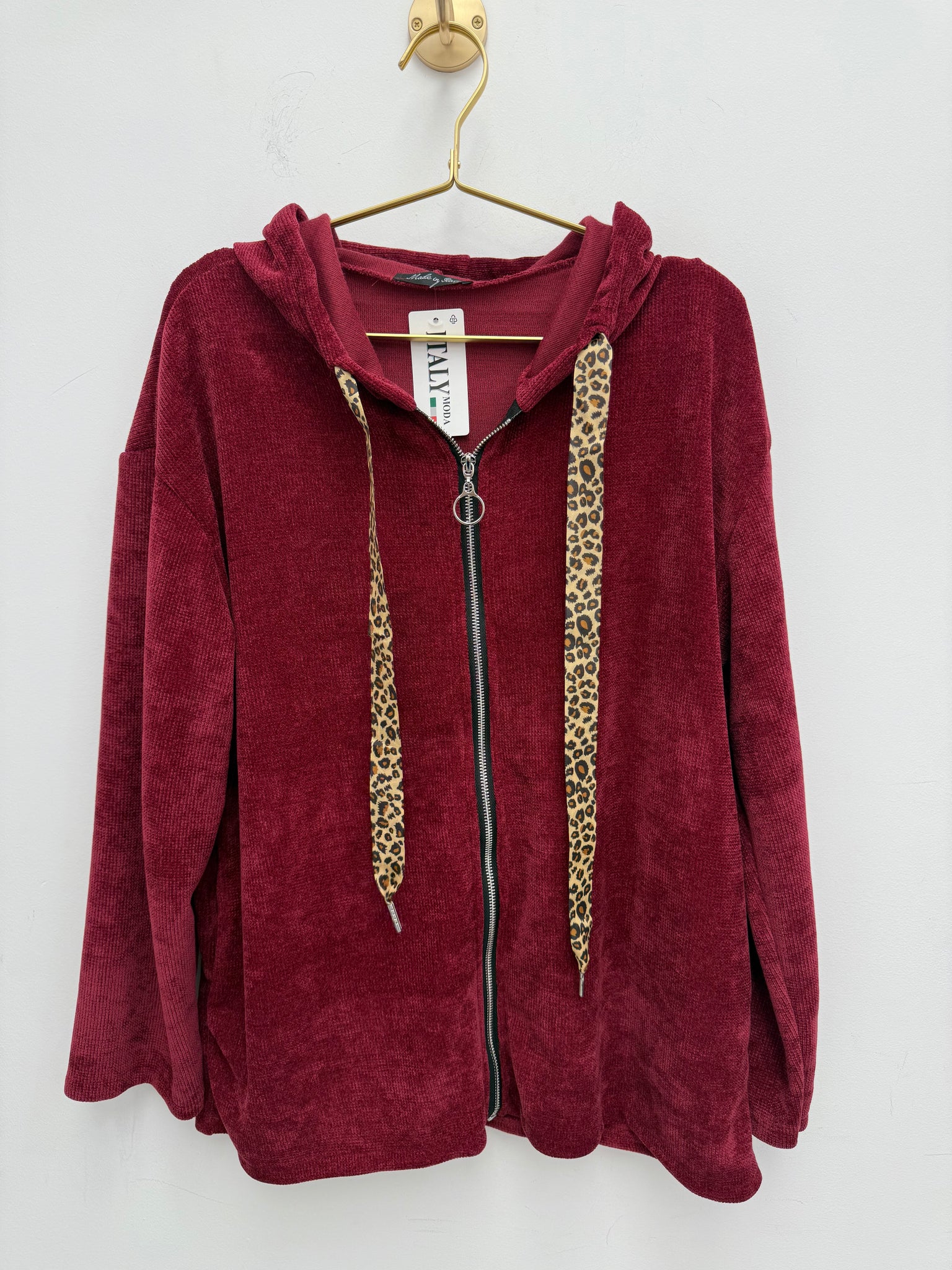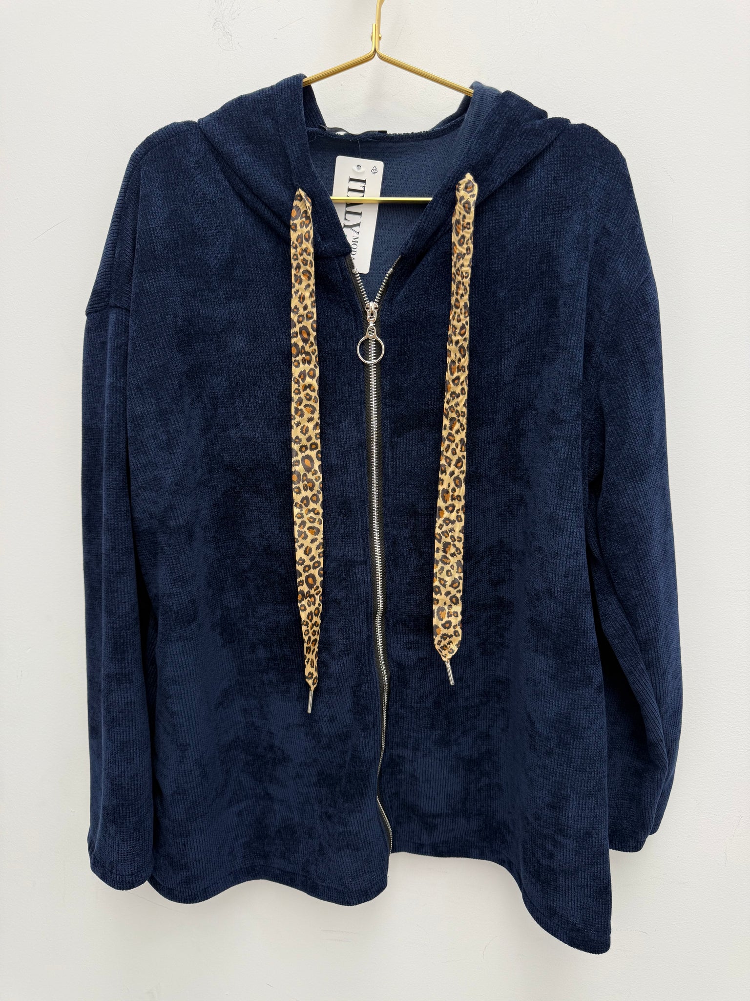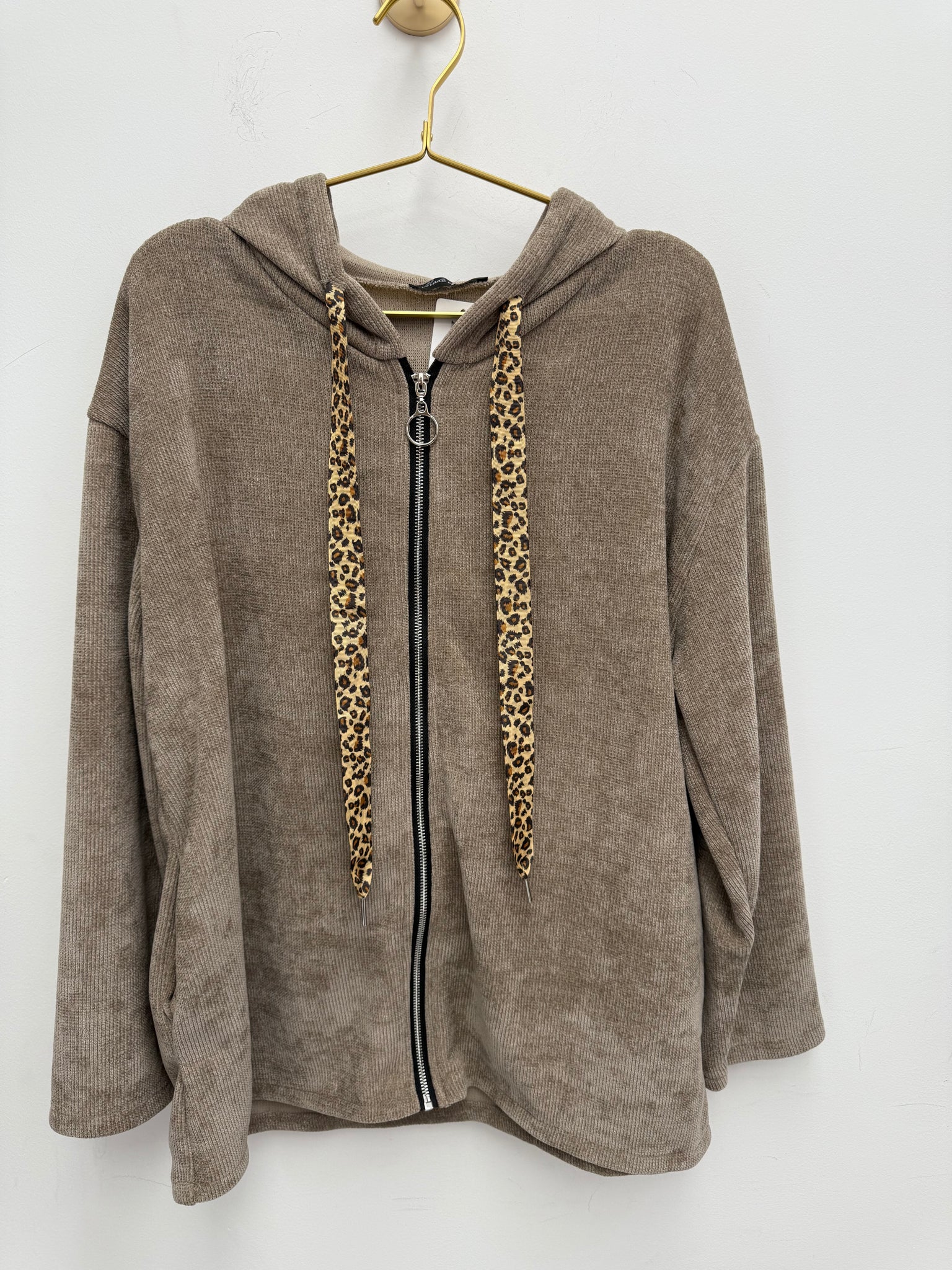 Gorgeous soft stretch chenille zip through hooded jacket with pockets.