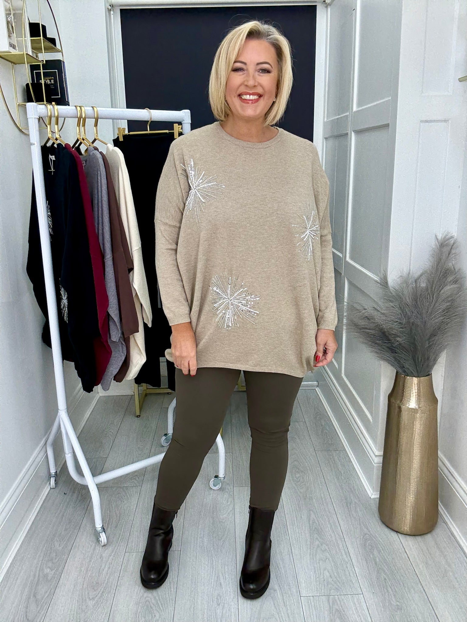 Gorgeous super soft stretch jumper with crystals and pearls.