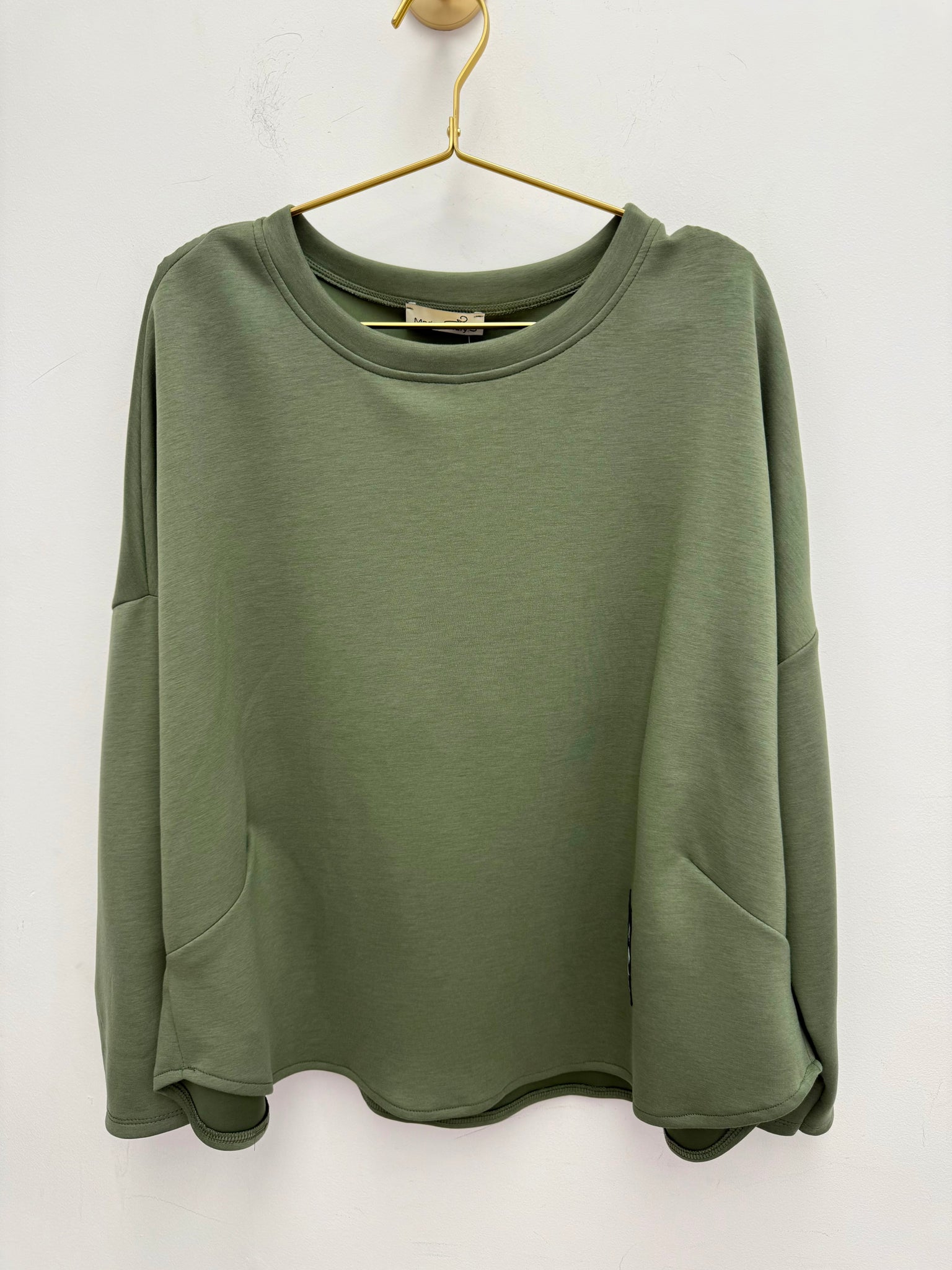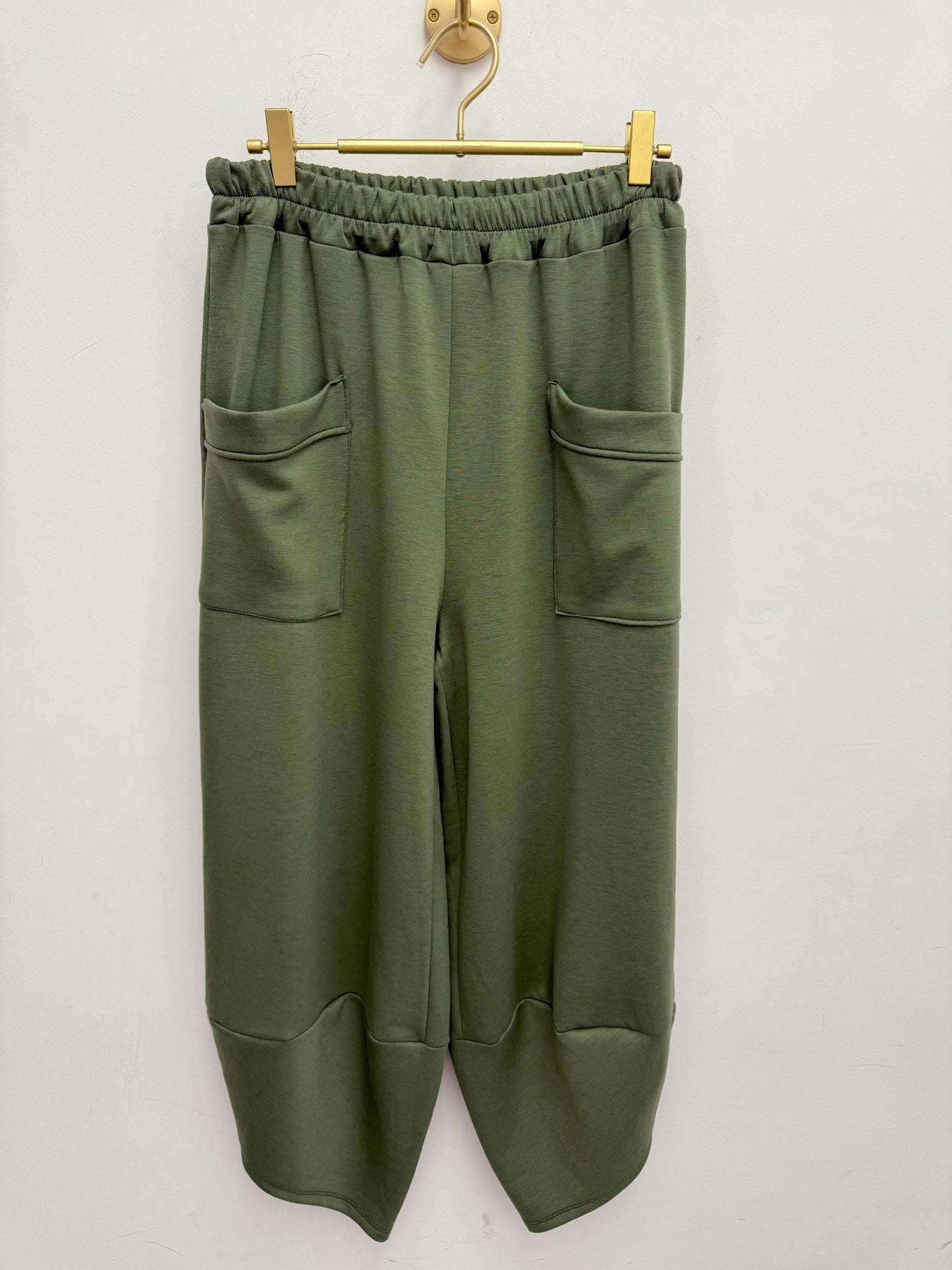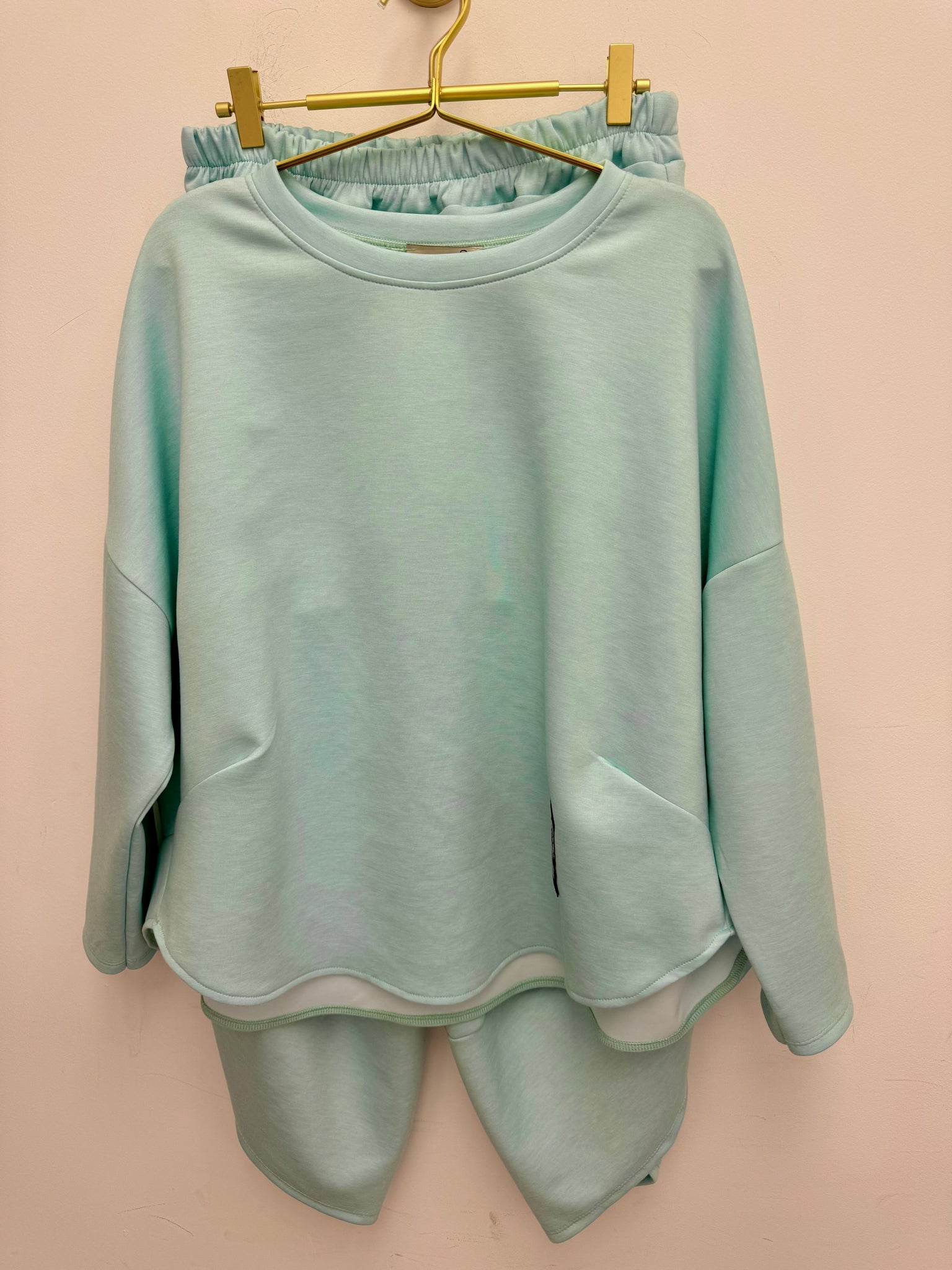 Gorgeous silky stretch light scuba fabric trousers with pockets and matching dip back top.
