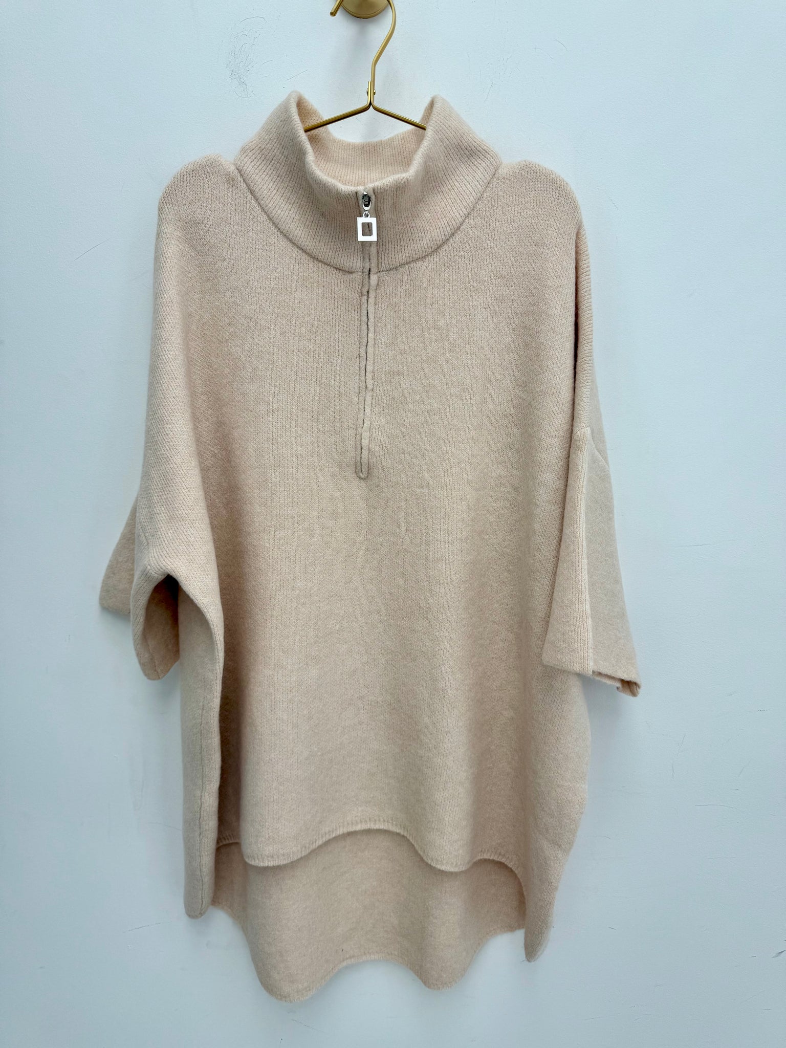 Gorgeous super soft cosy oversized dip back jumper with silver adjustable zip collar.