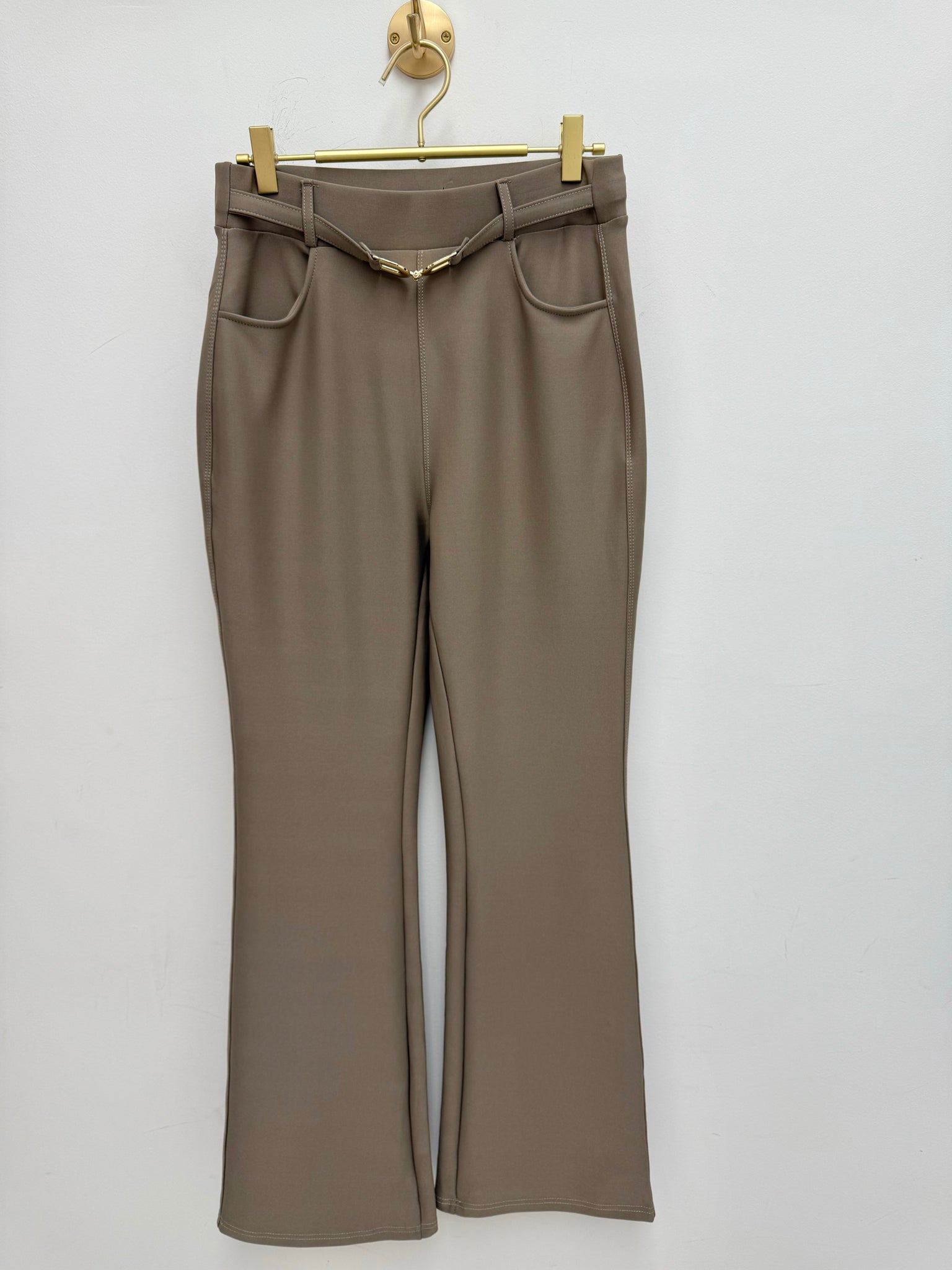 Amazing super stretch high waisted light scuba fabric flares with gold buckle detail.