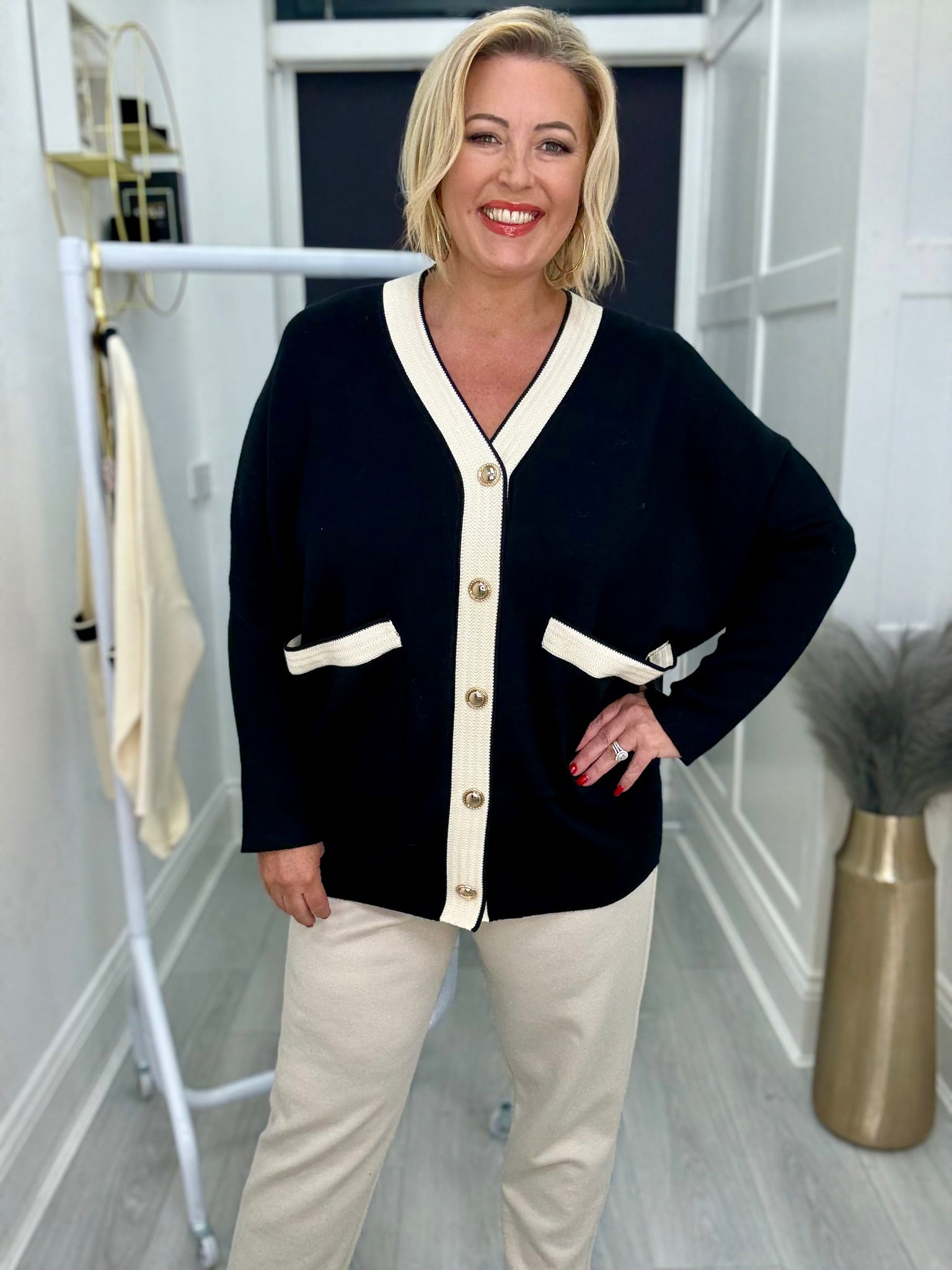 Beautiful soft stretch knitted cardigan with gold buttons and pockets.