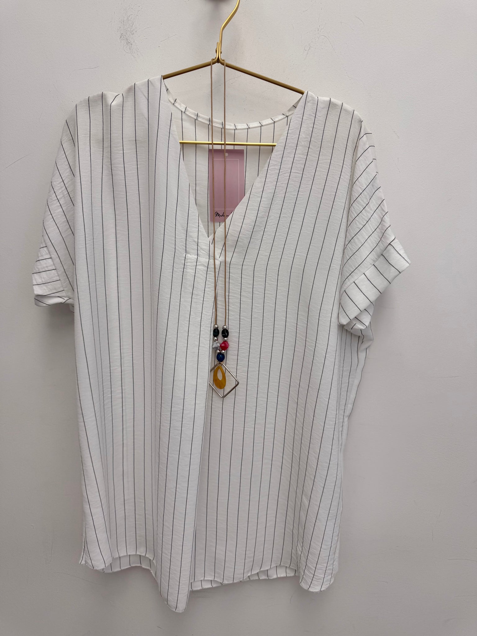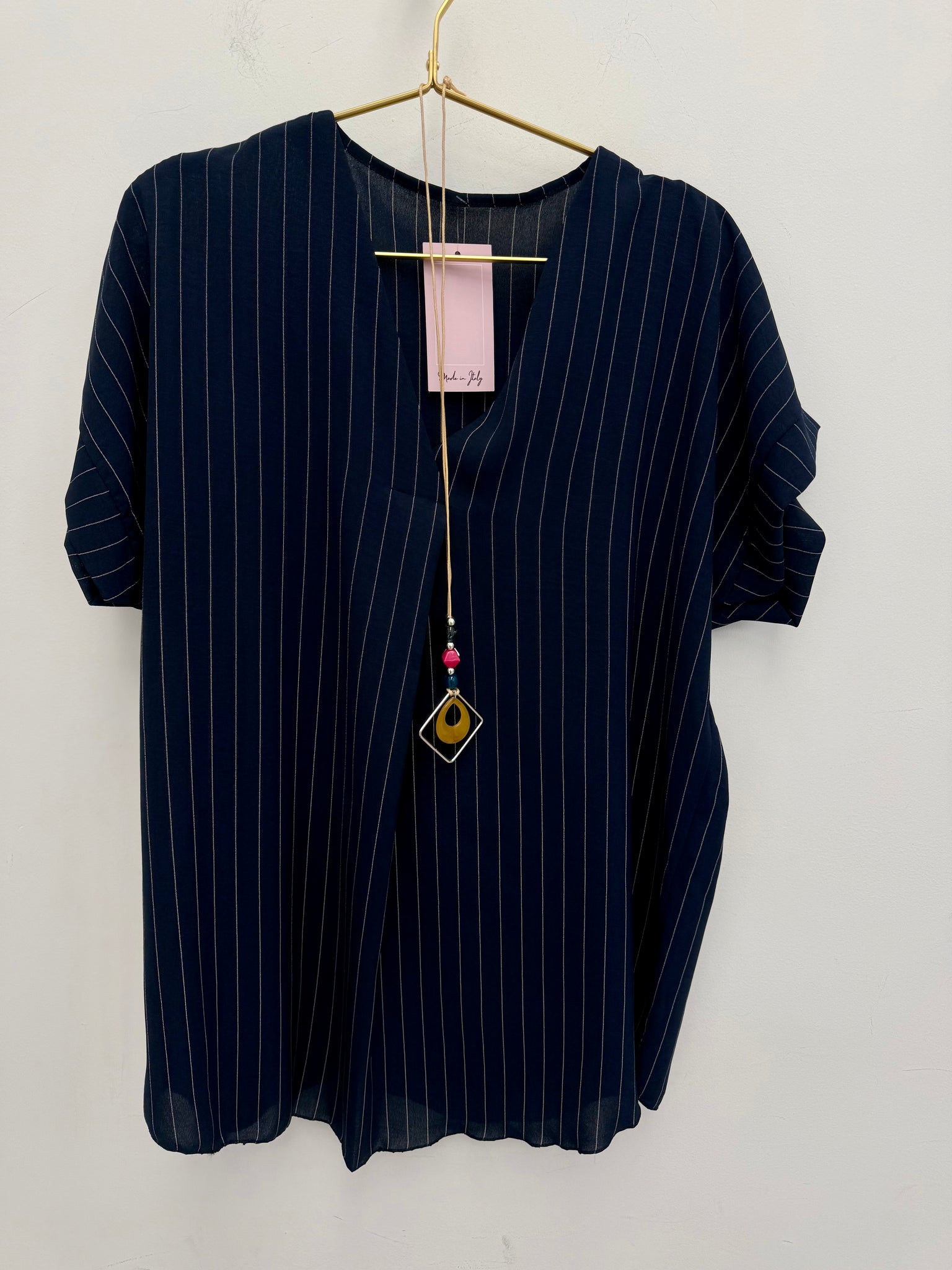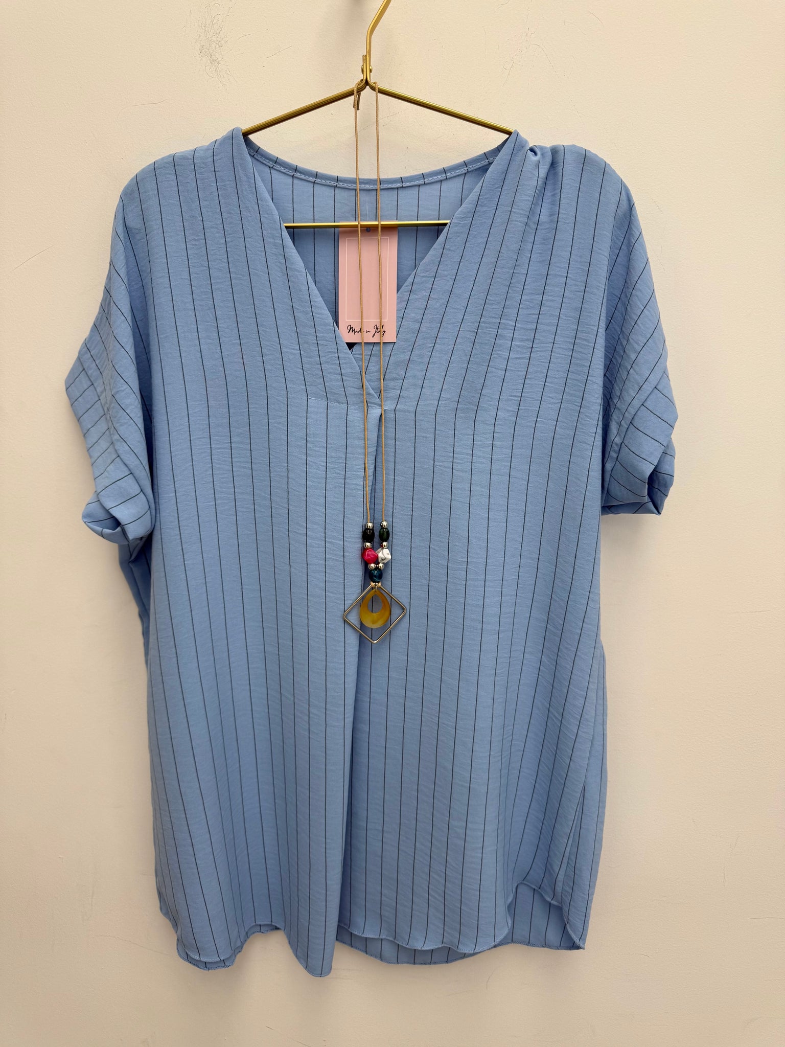 Gorgeous flattering pleat front non crease top with necklace.