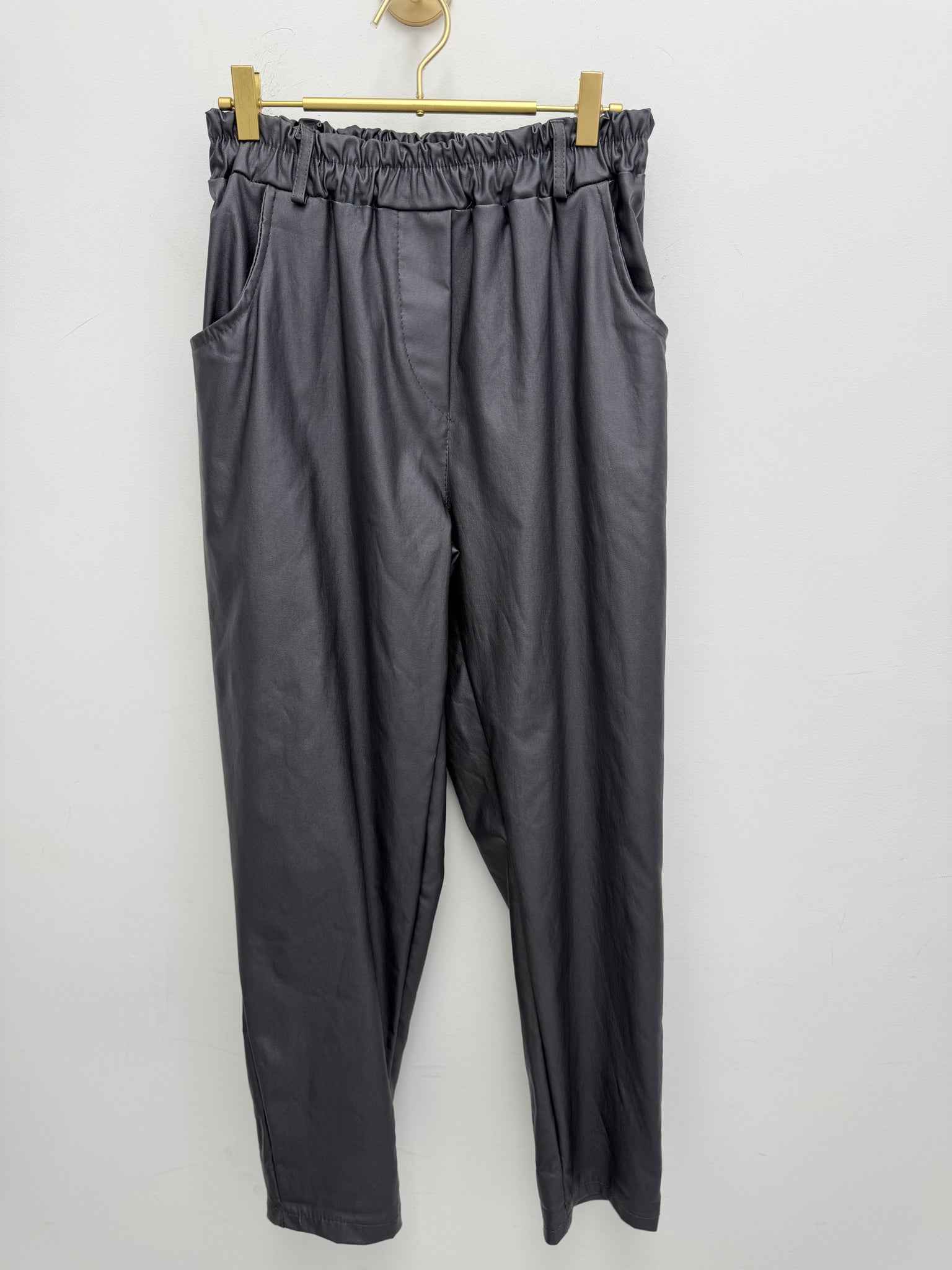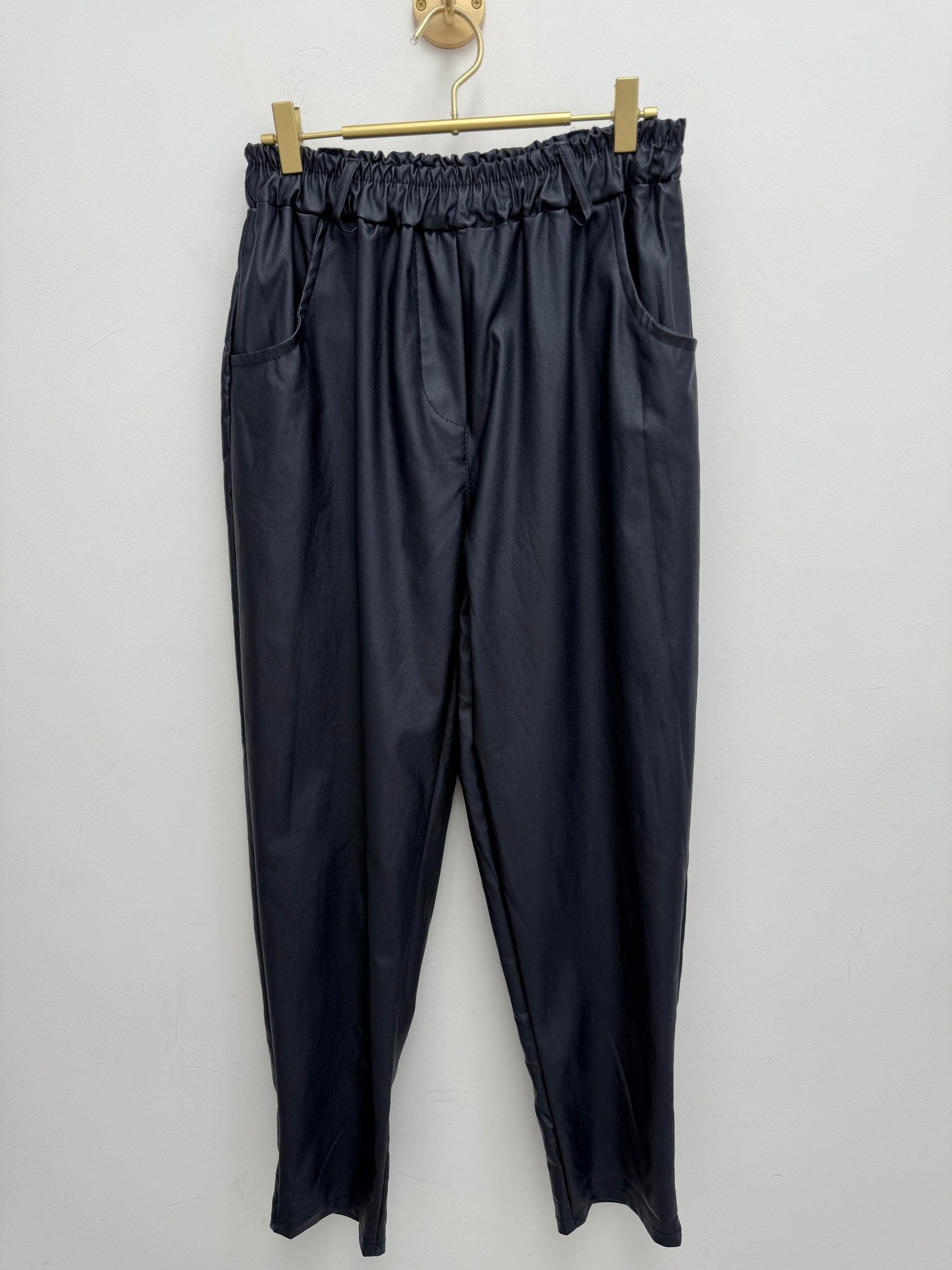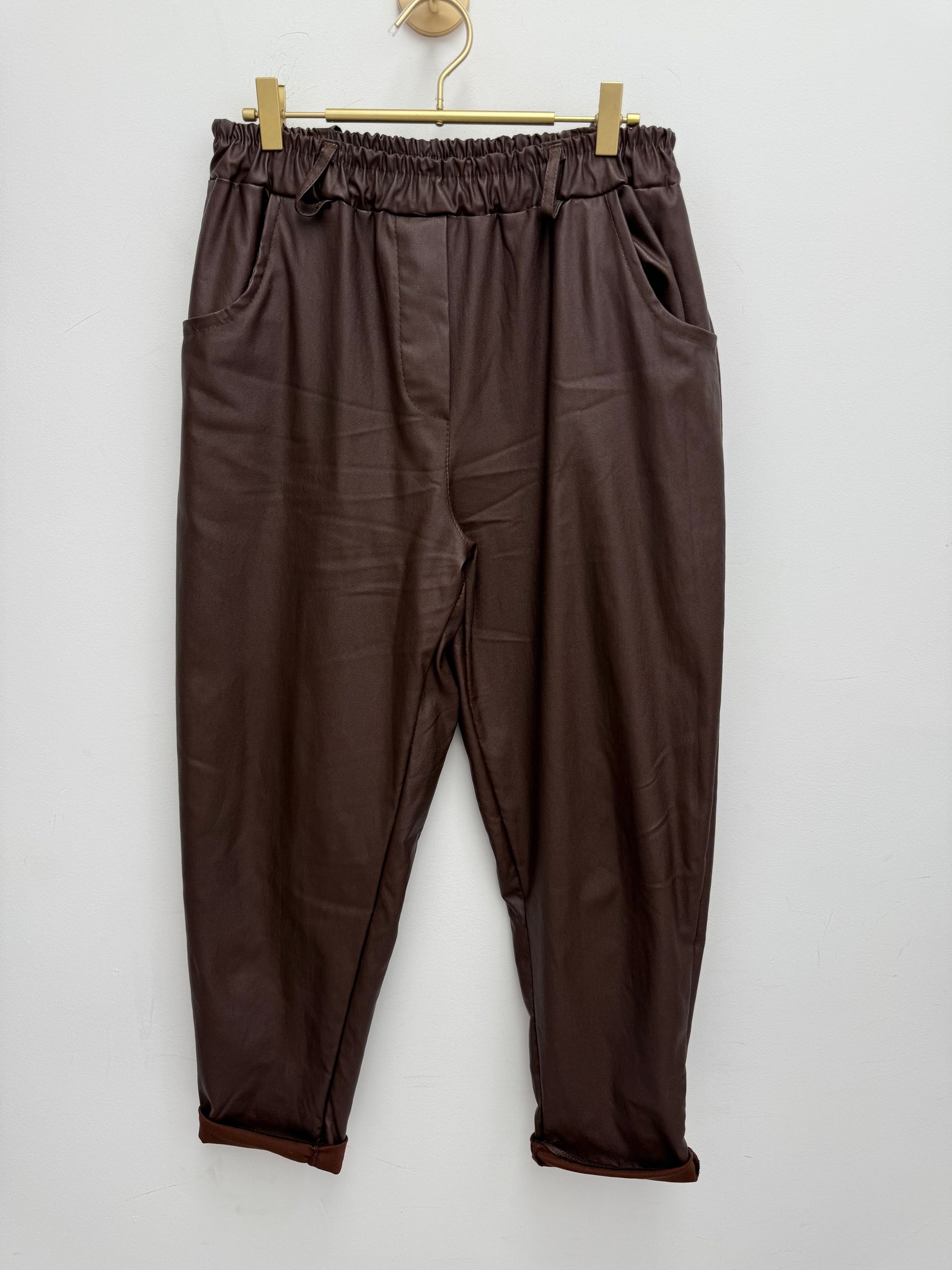 Amazing new stretch matt leather look high waisted trousers and with pockets. Roll up or down hems.