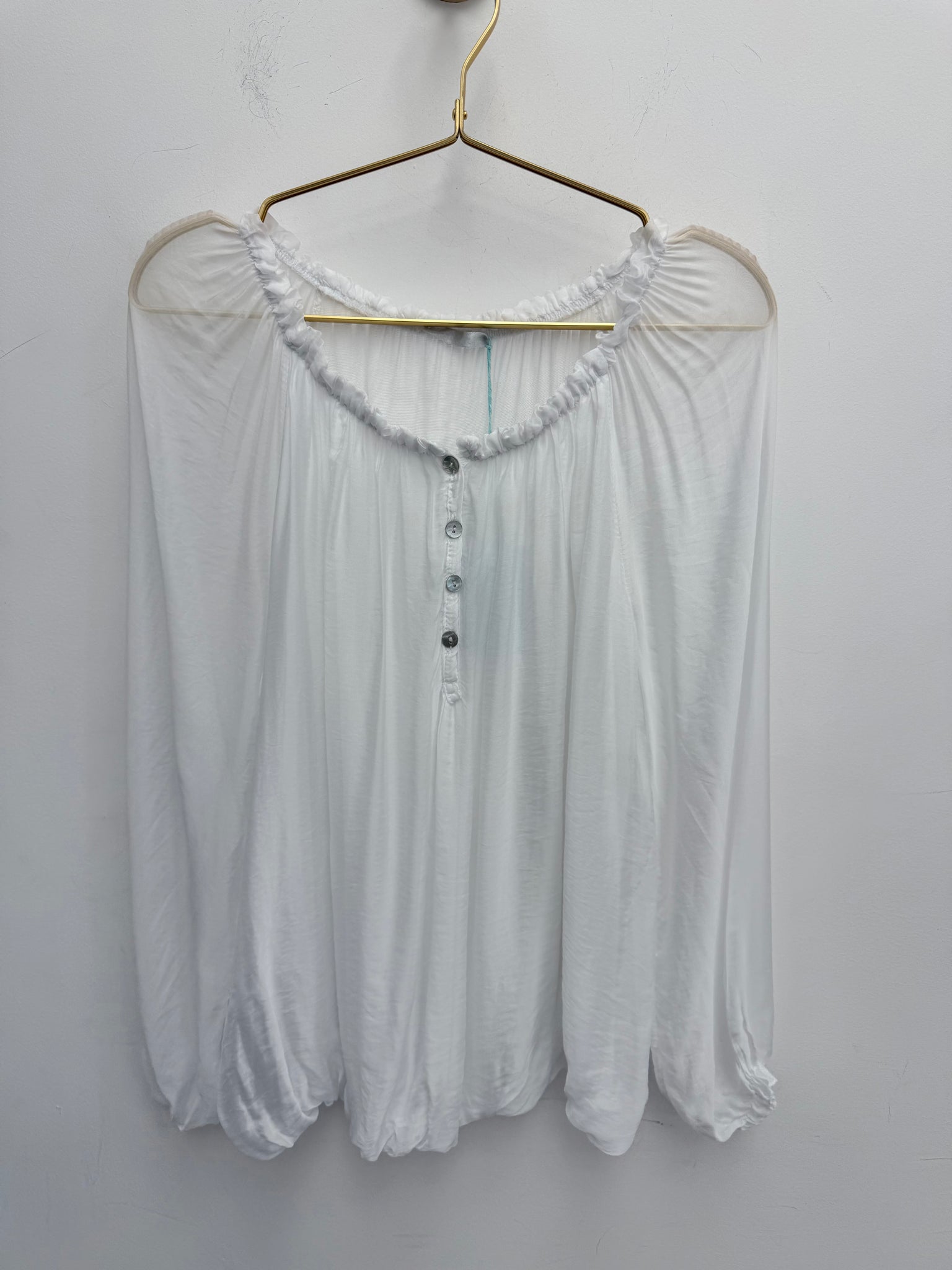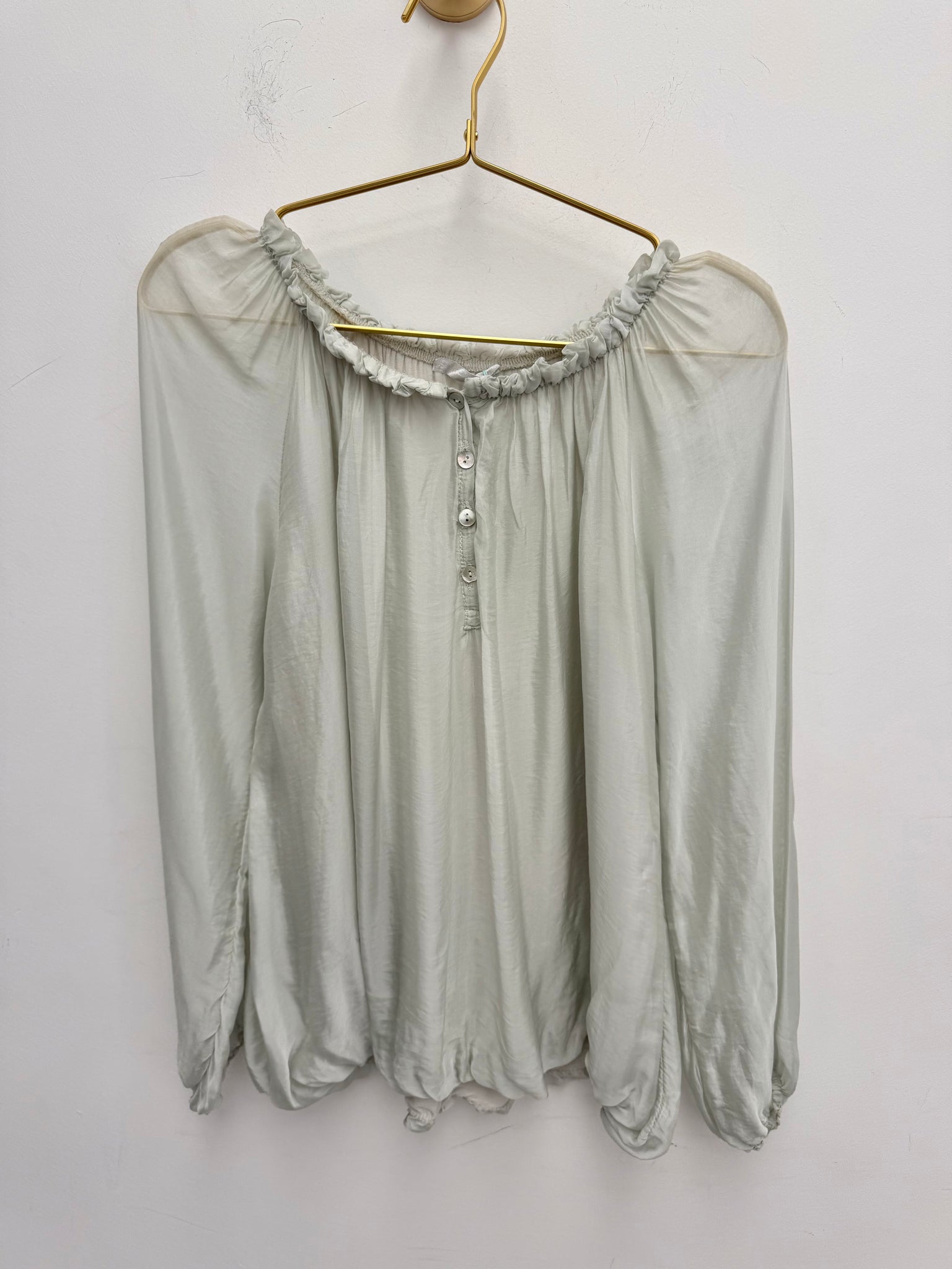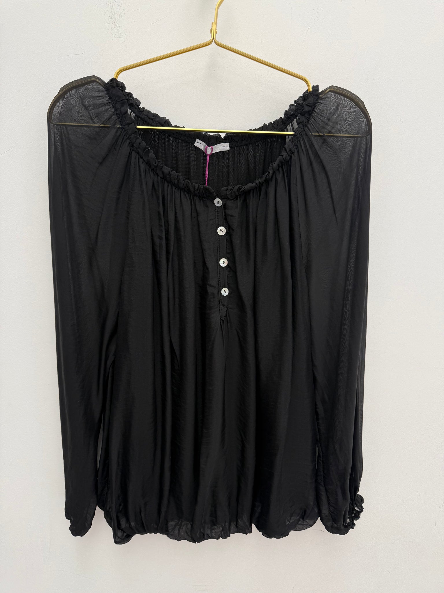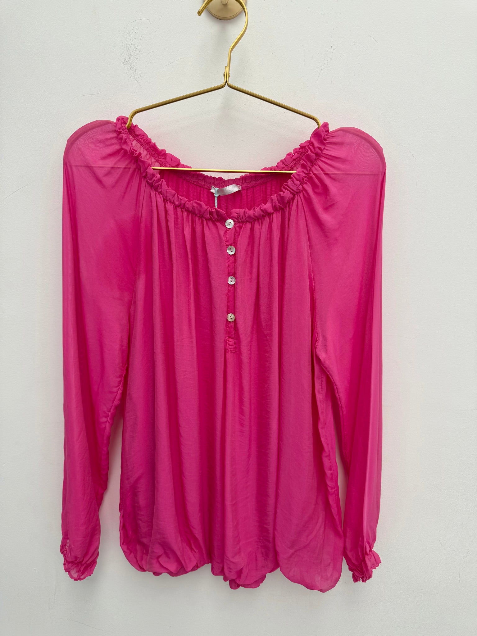 Stunning silk top with attached stretch lining and stretch bubble hem.