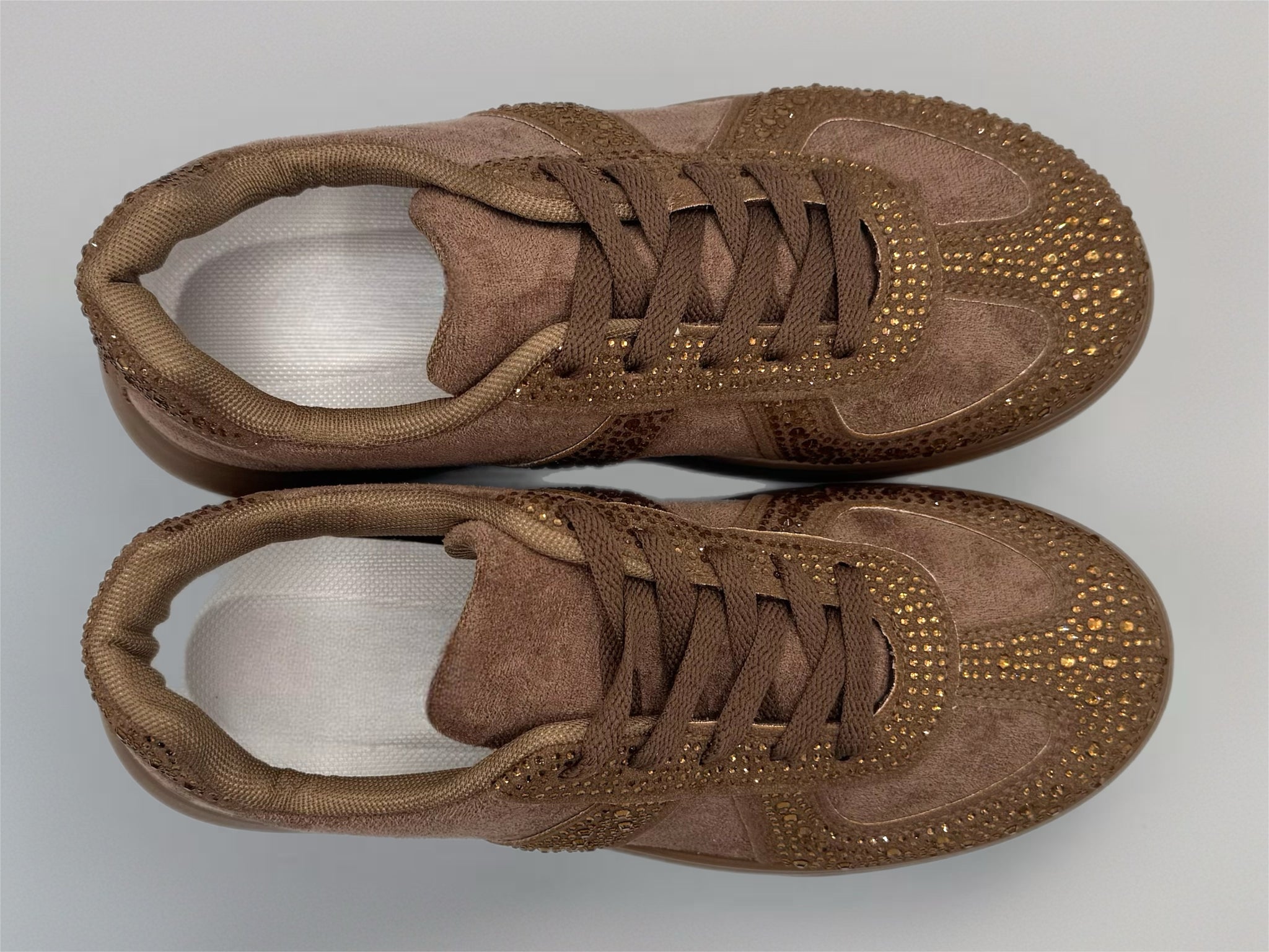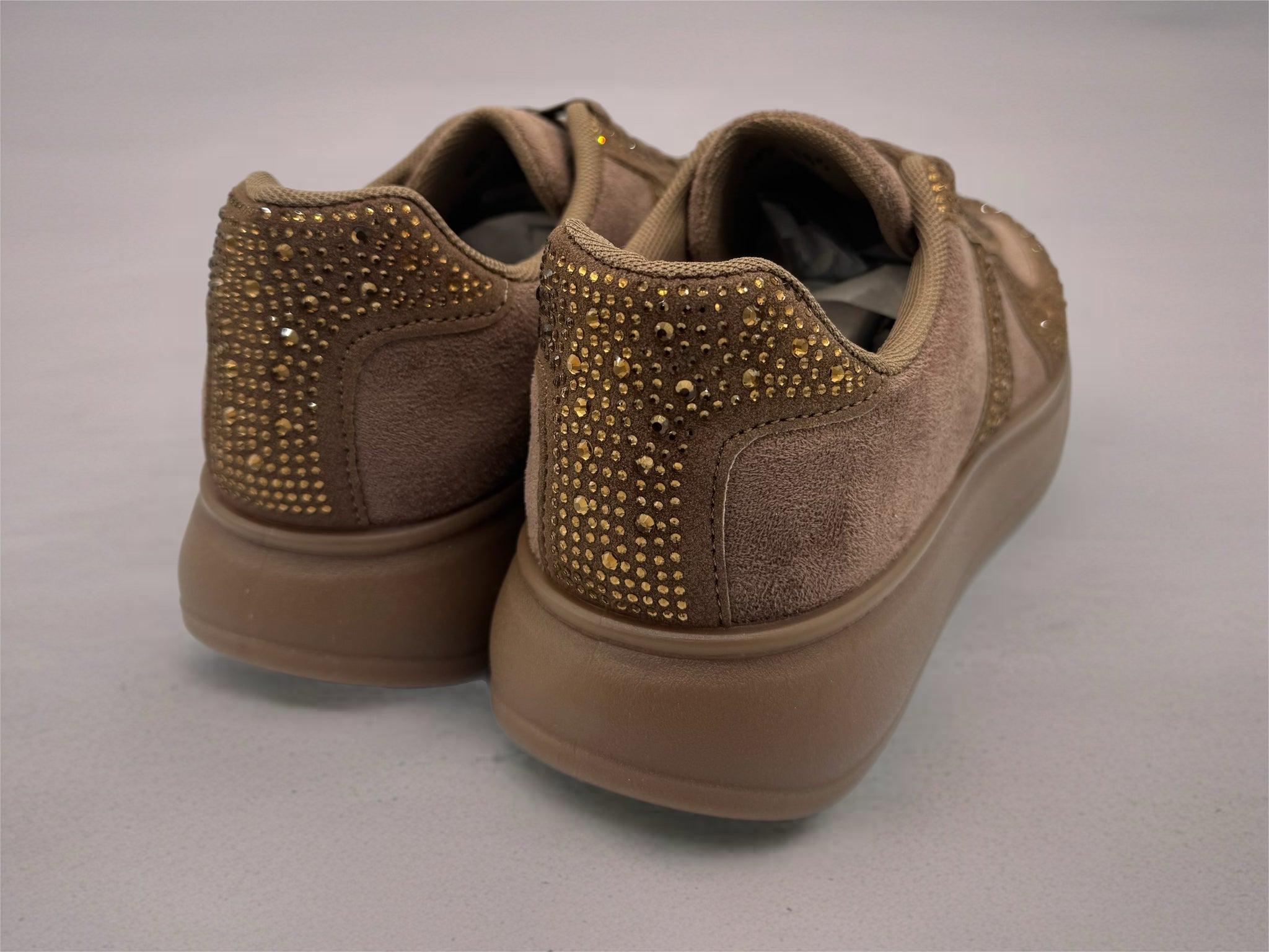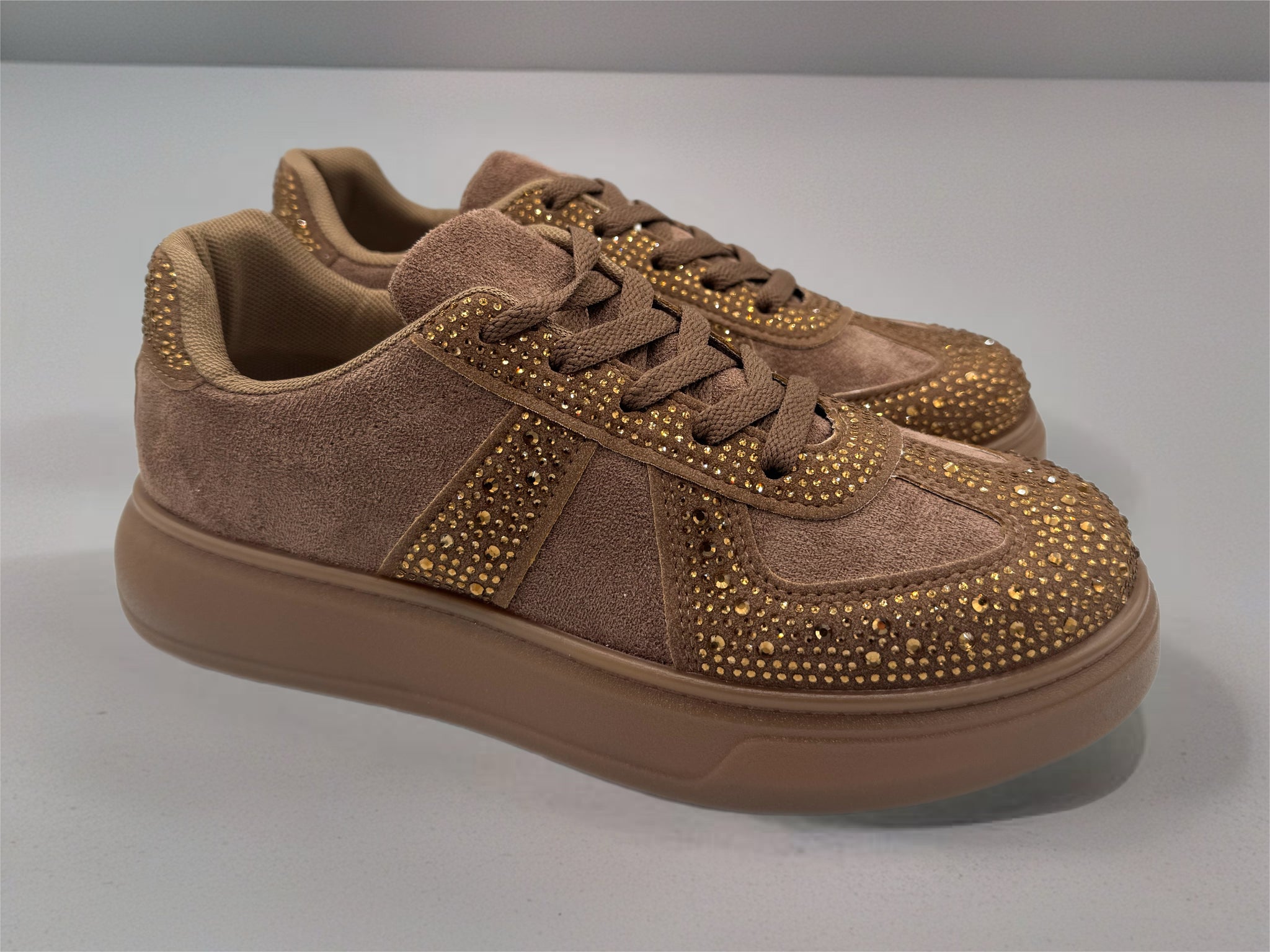 Stunning comfy chocolate brown suedette platform trainers with crystals.