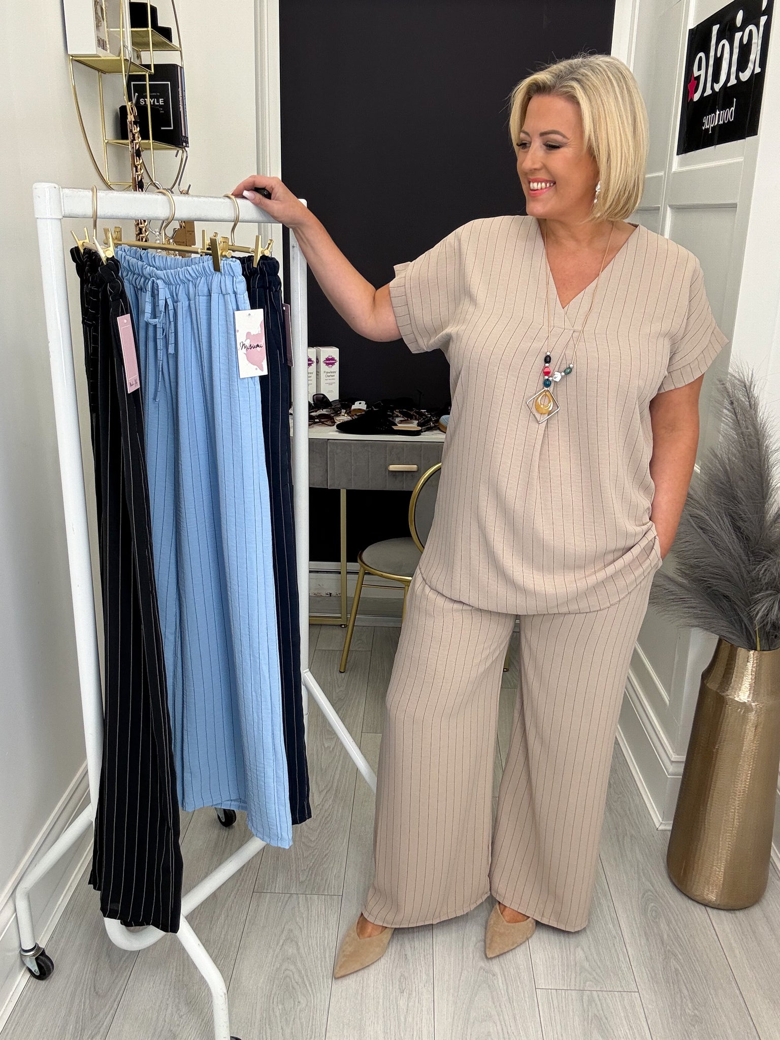 Beautiful stretch waistband non crease pinstripe trousers with pockets.