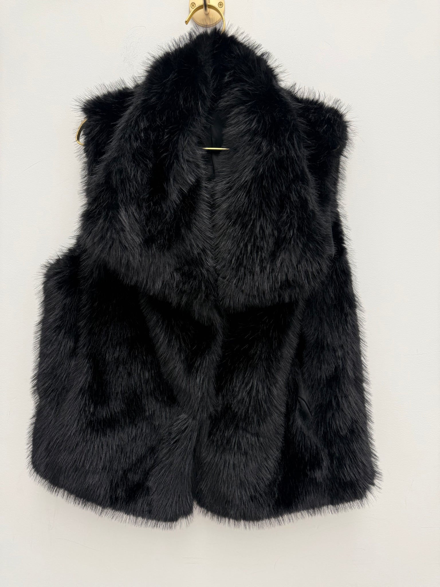 Stunning soft plush faux fur fully lined gilet with pockets and popper fastening.