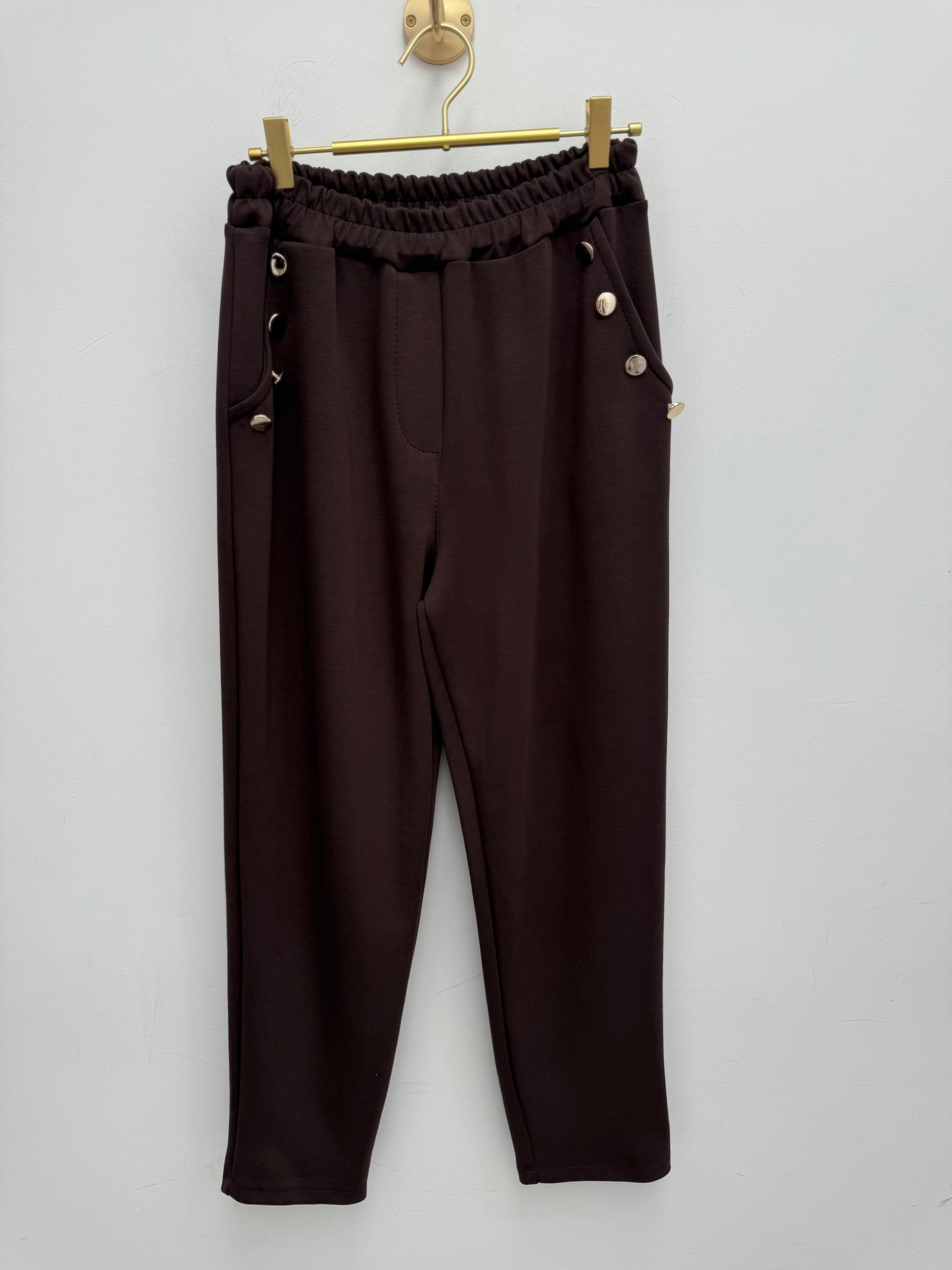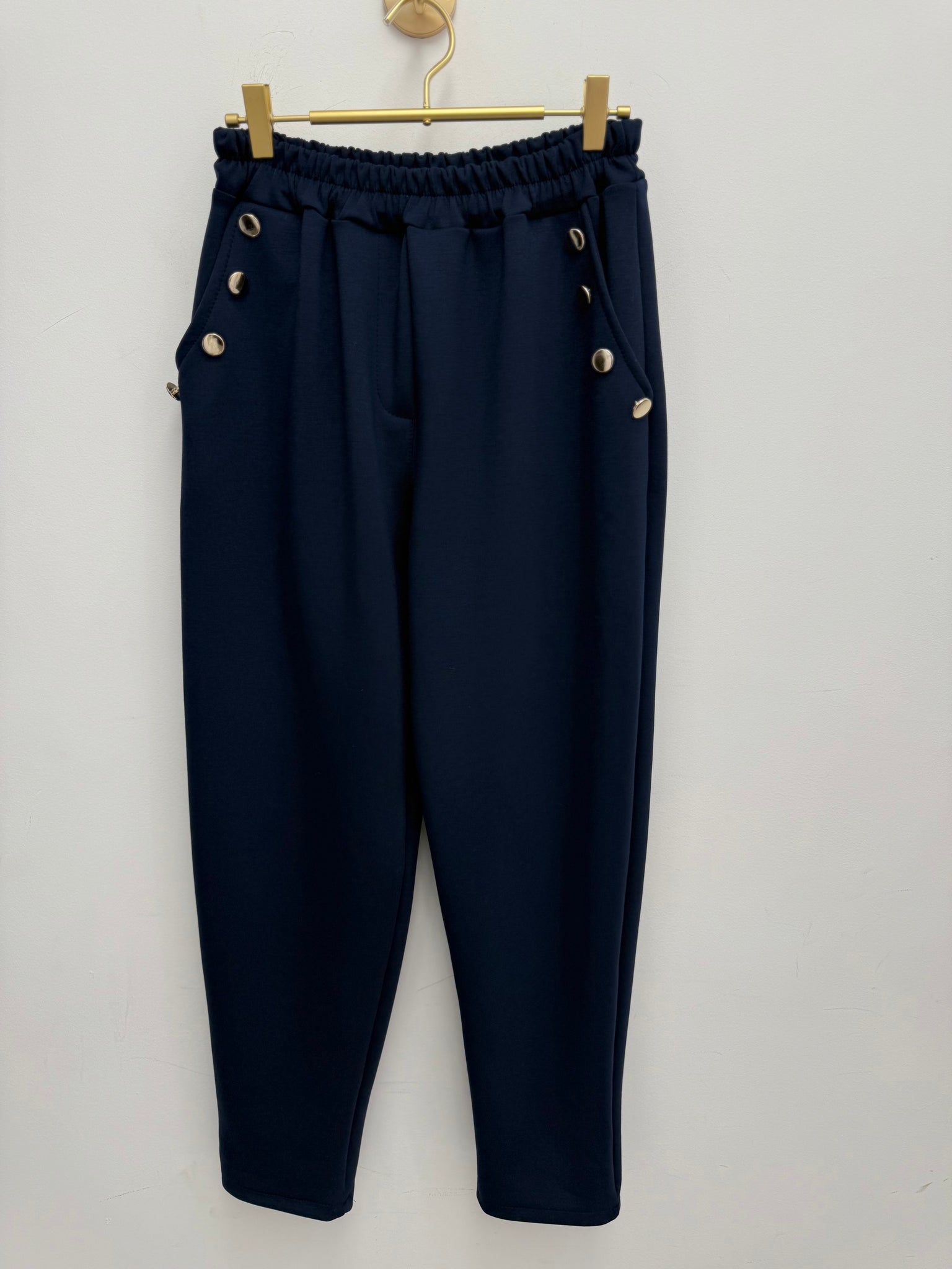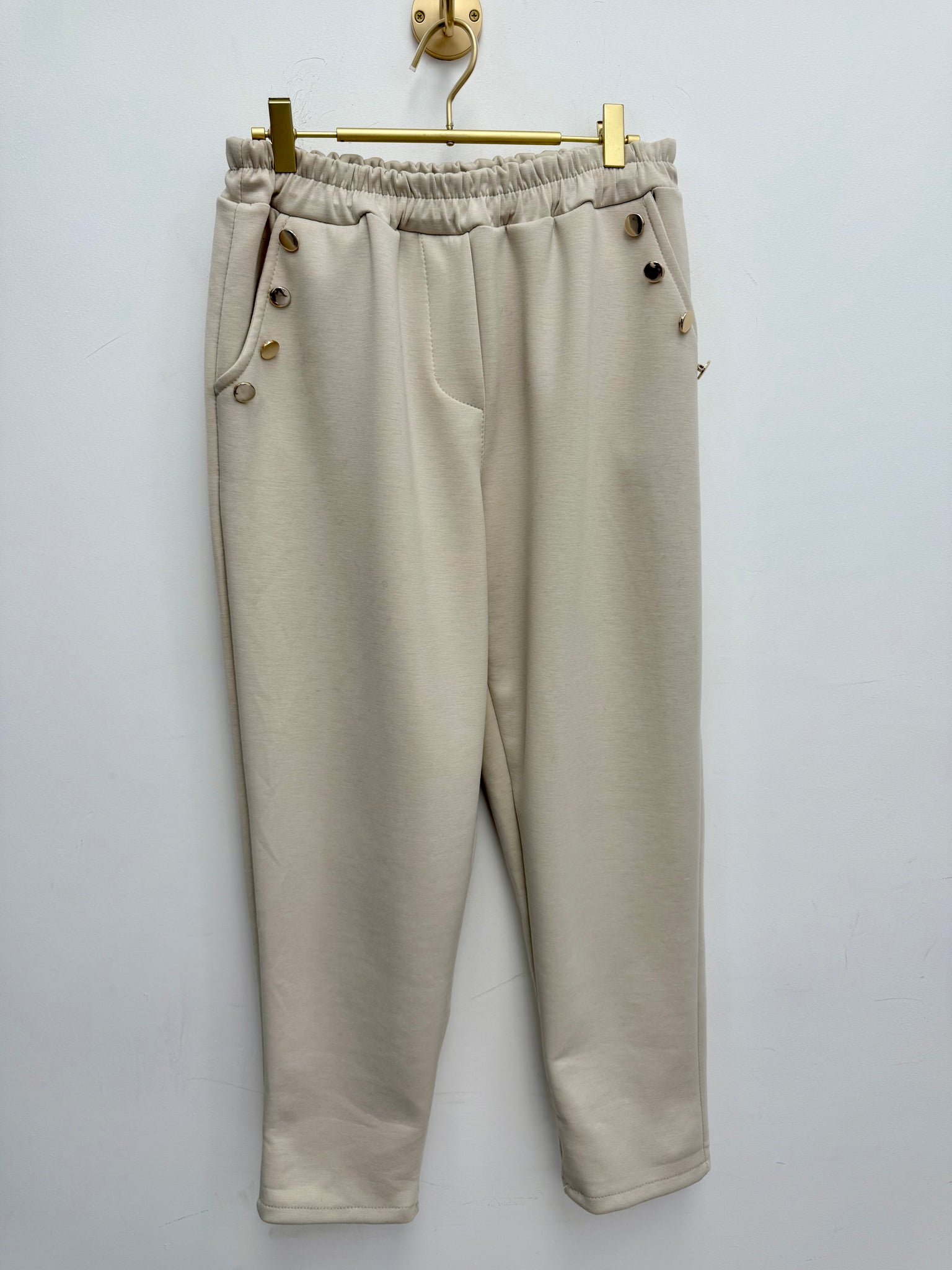 Amazing super stretch high waisted light scuba fabric, smart looking joggers with gold buttons and pockets.
