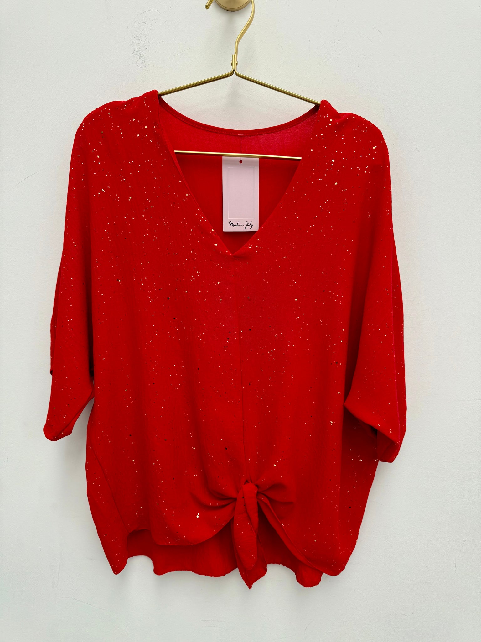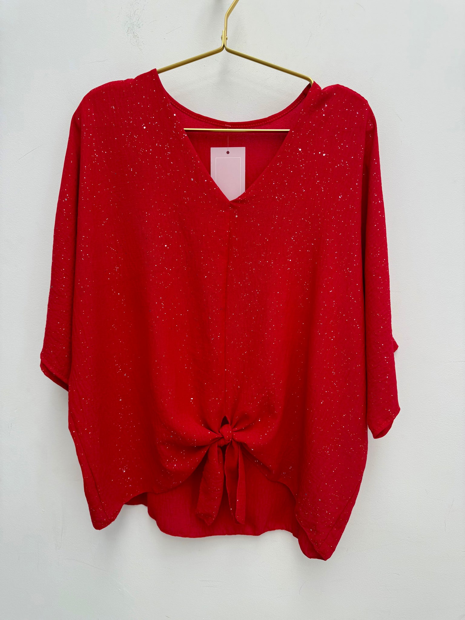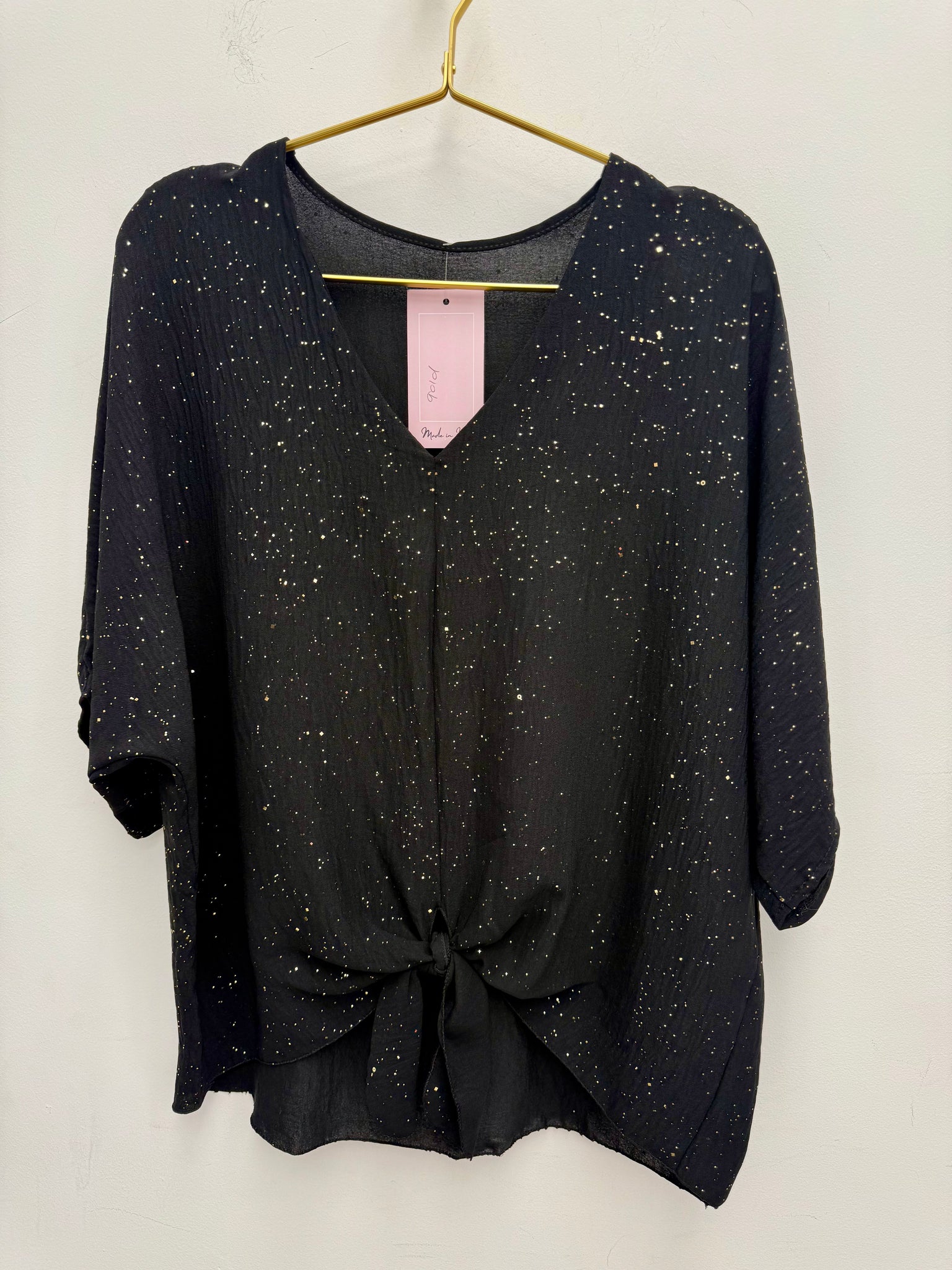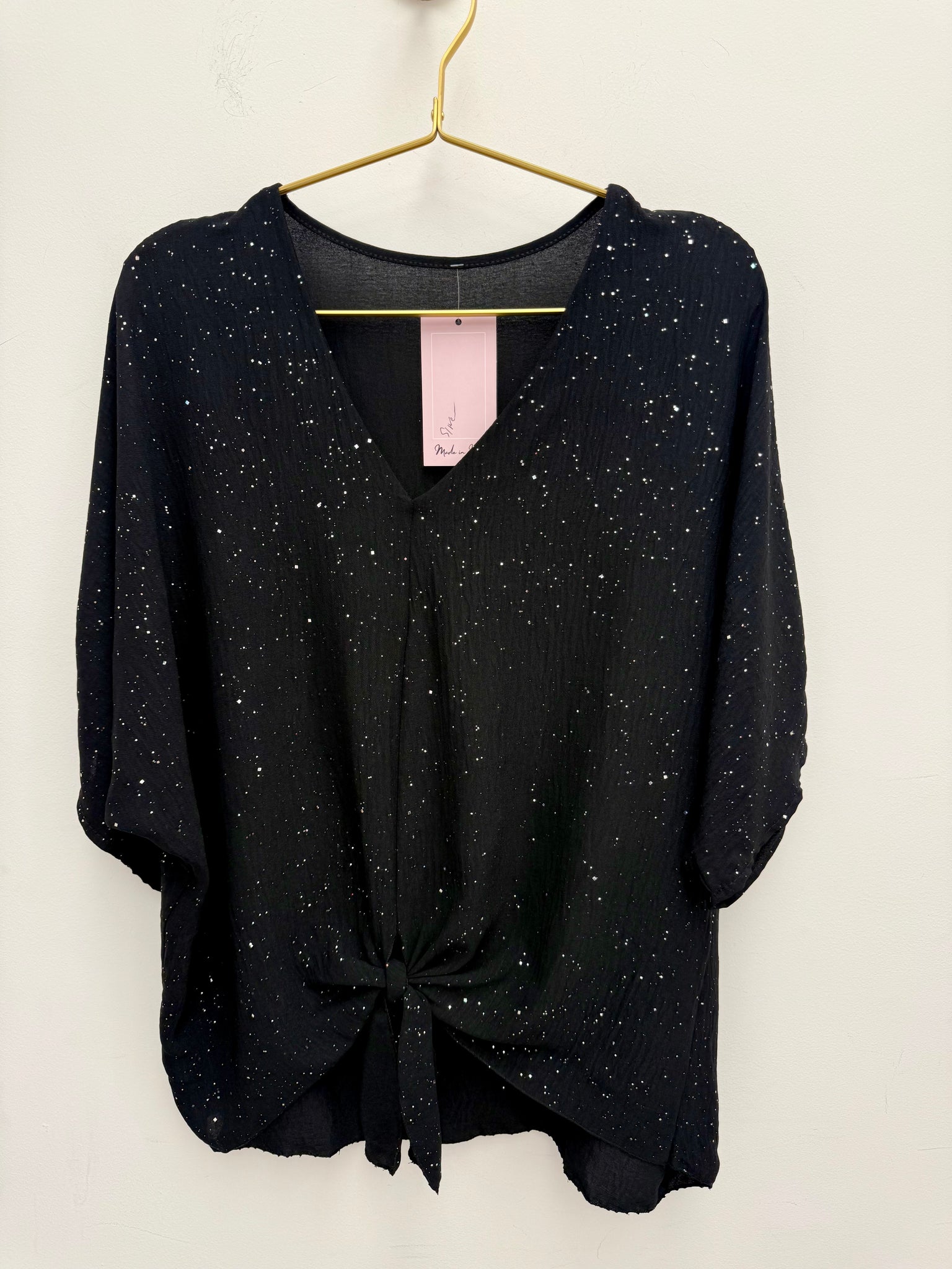 Gorgeous flattering adjustable tie front non crease dip back top with sequins.