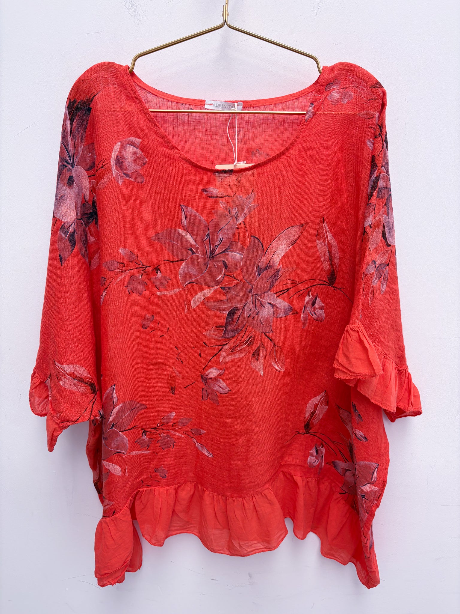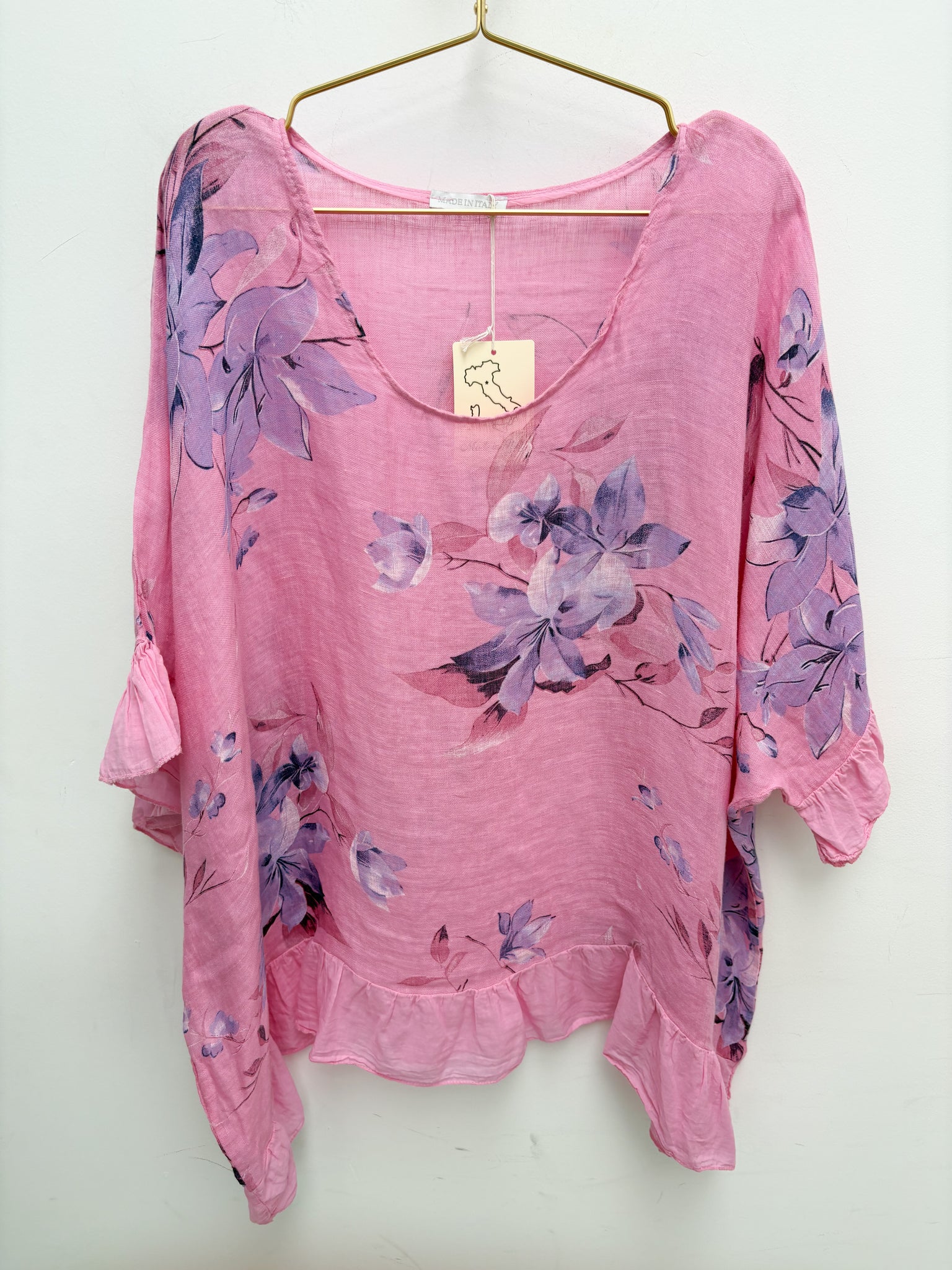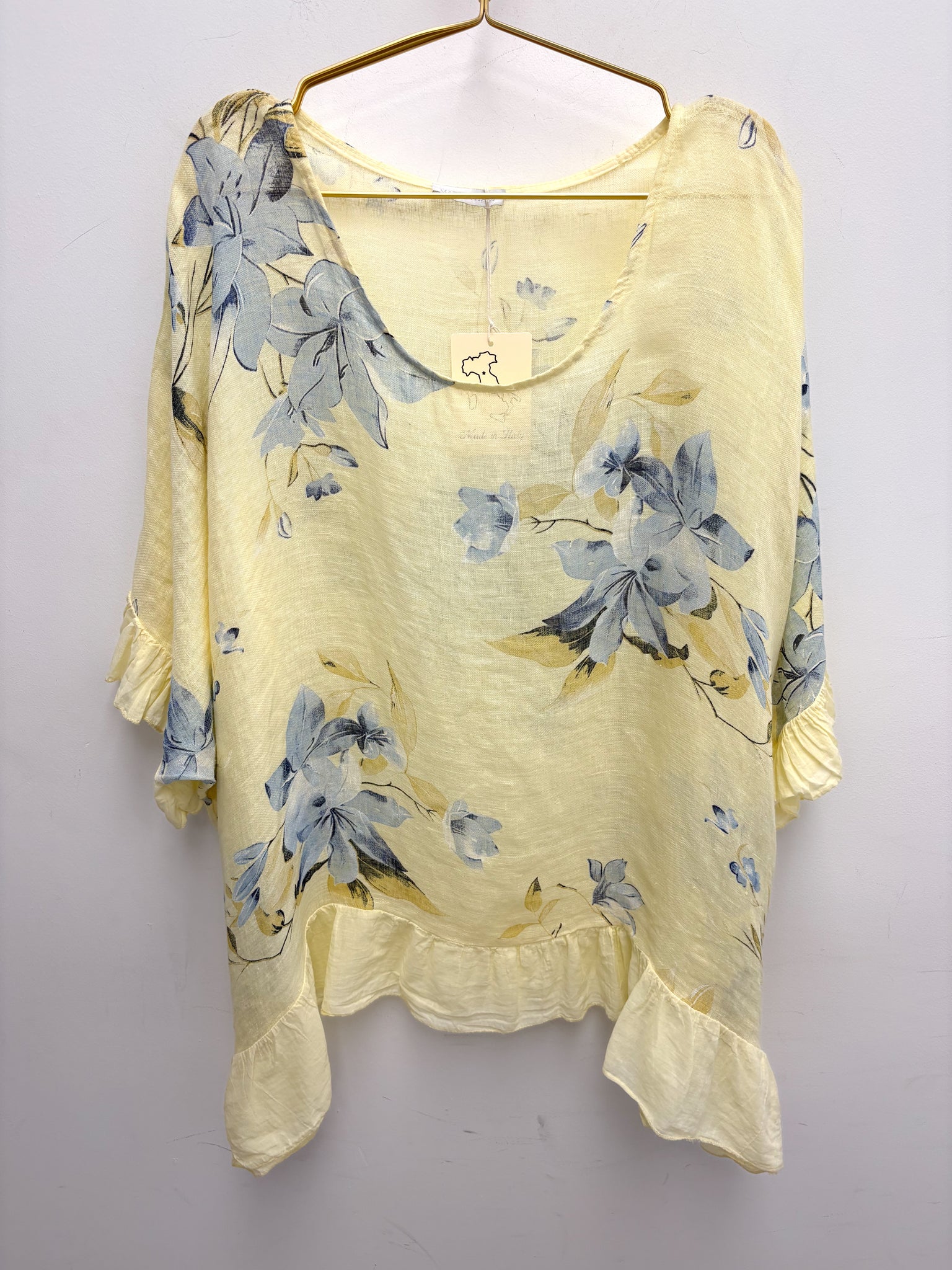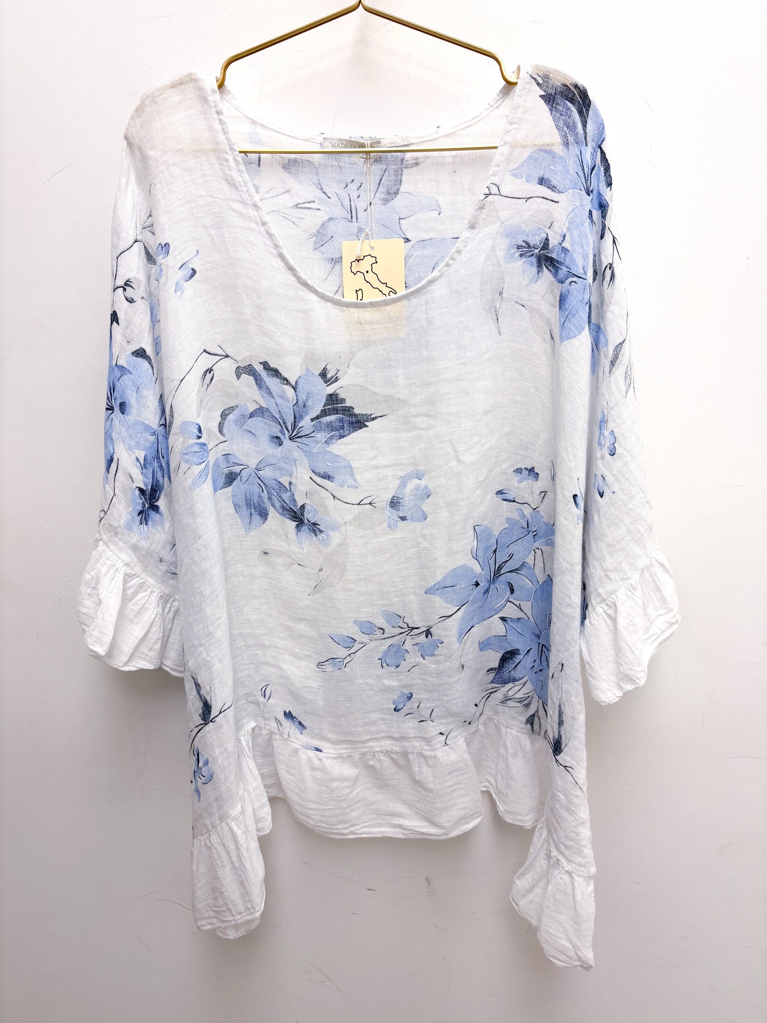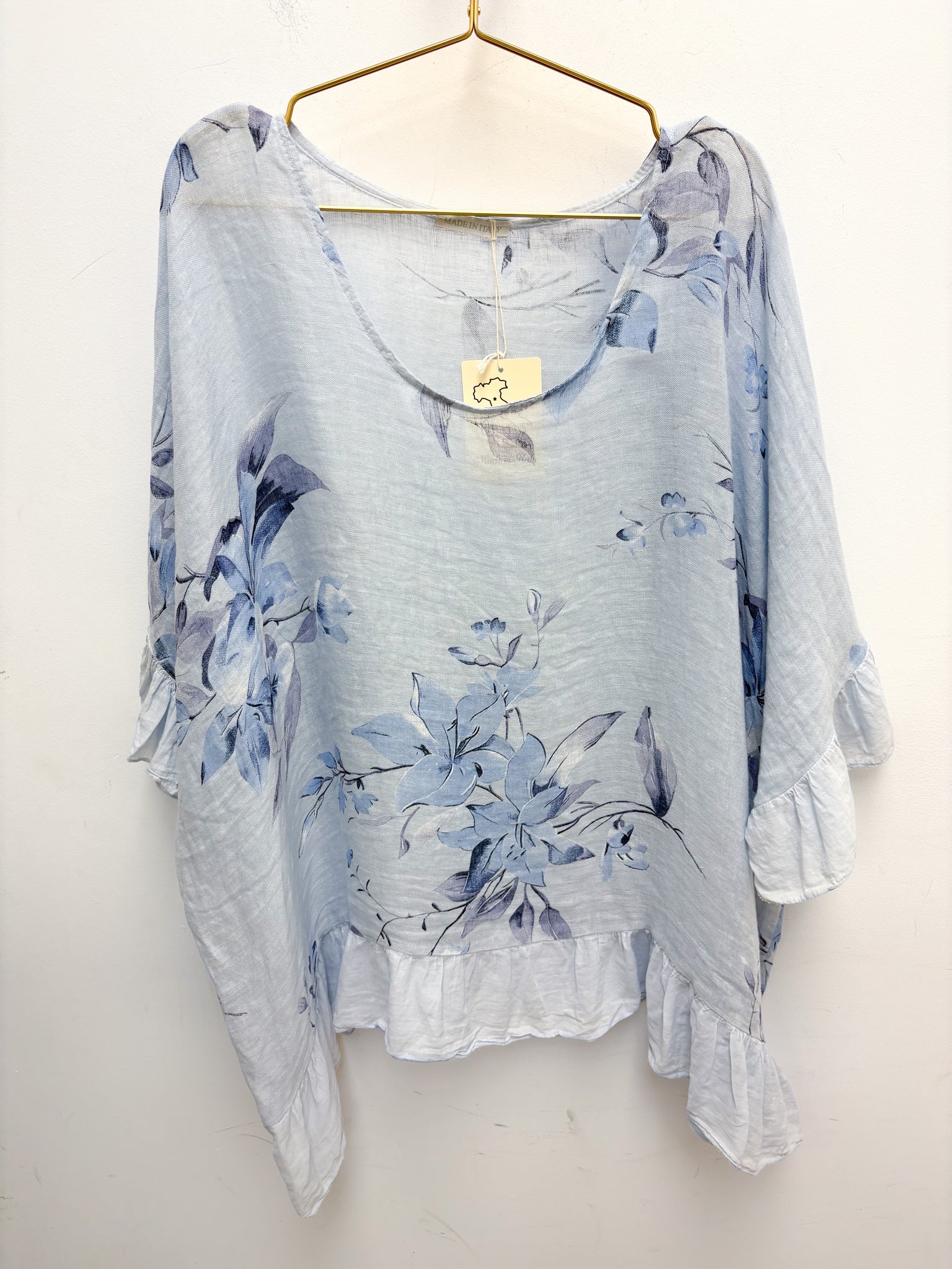Beautiful oversized linen top with frill edging.