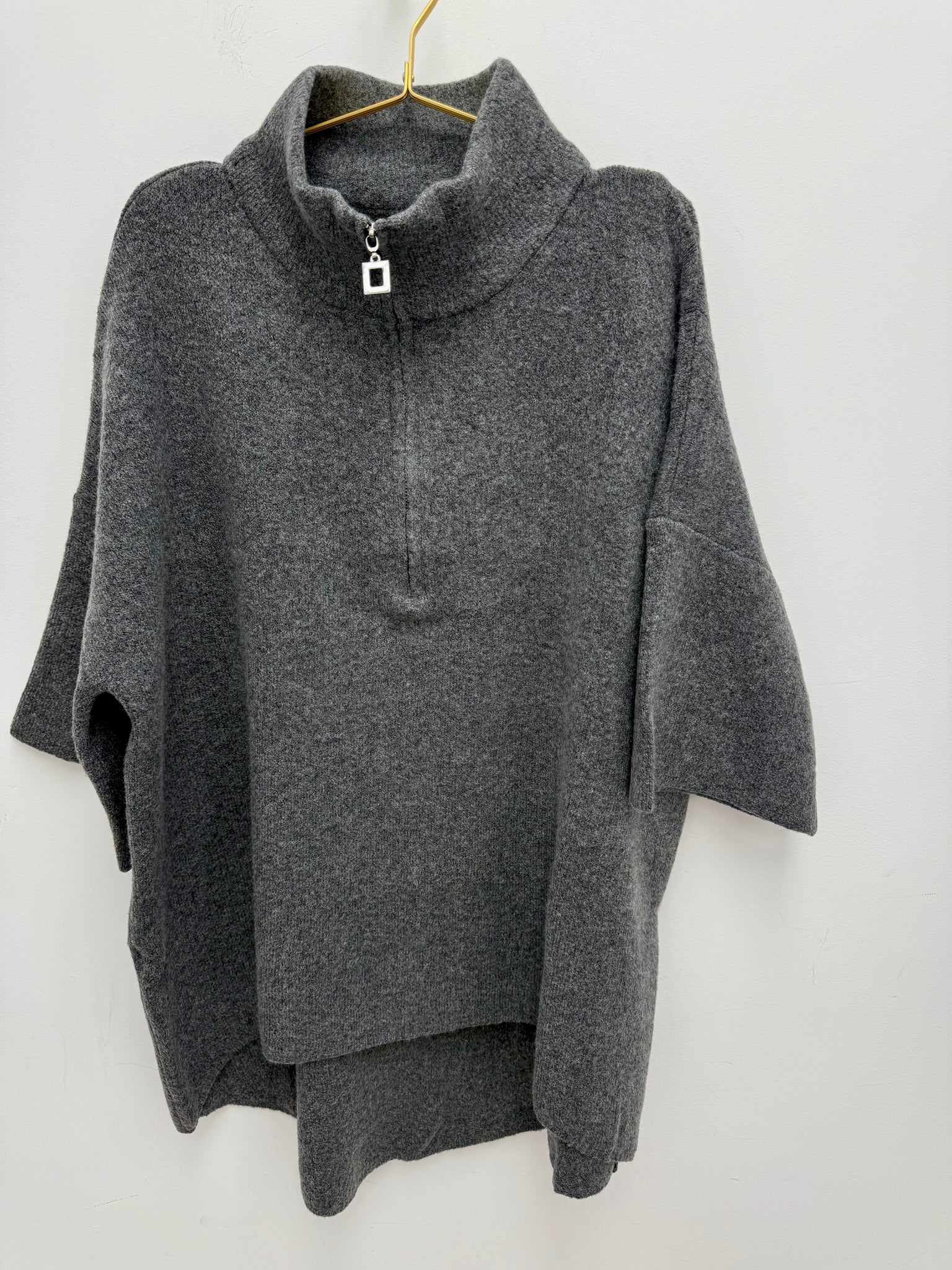 Gorgeous super soft cosy oversized dip back jumper with silver adjustable zip collar.