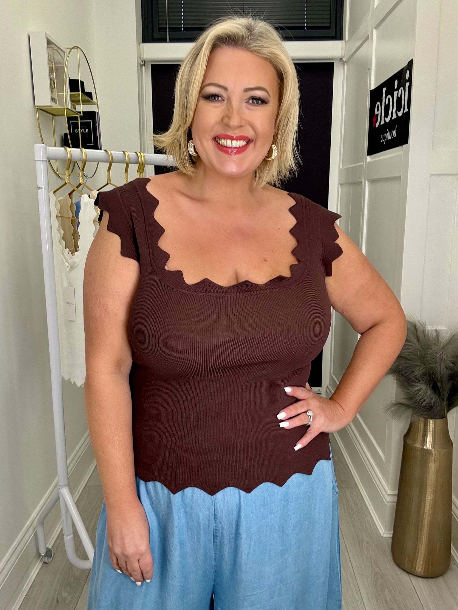 Gorgeous super stretch scalloped edge top.