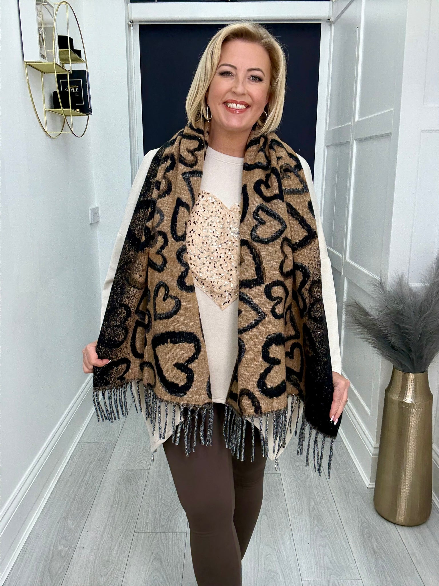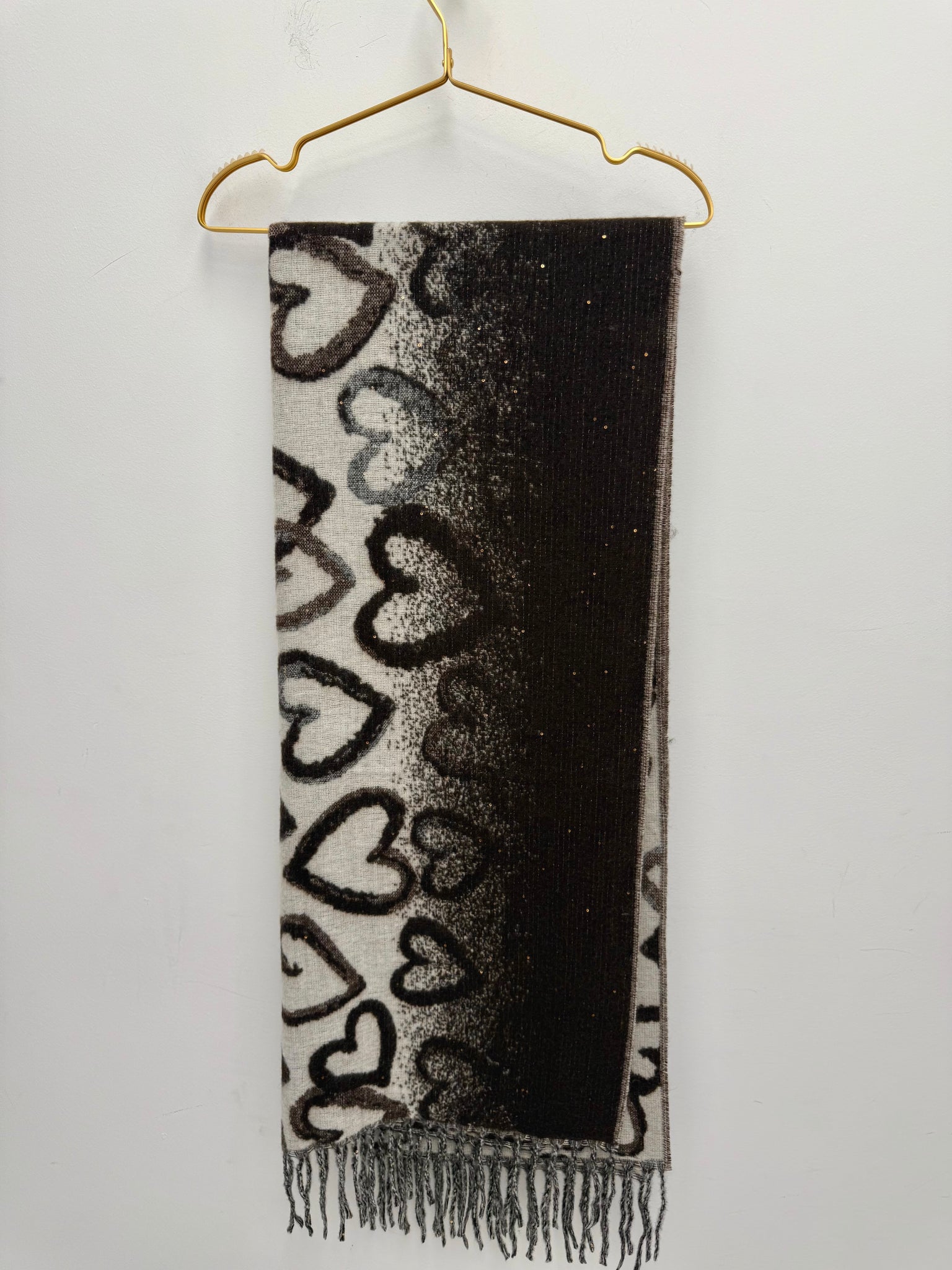 Beautiful soft cosy scarf/wrap with scattered tiny sequins and fringing.