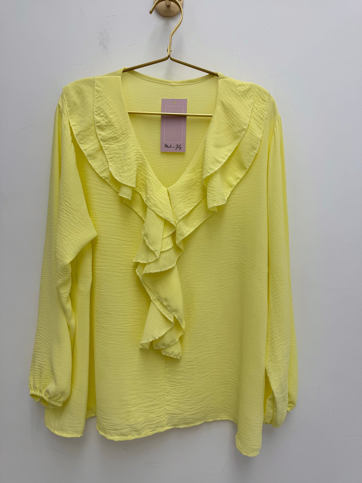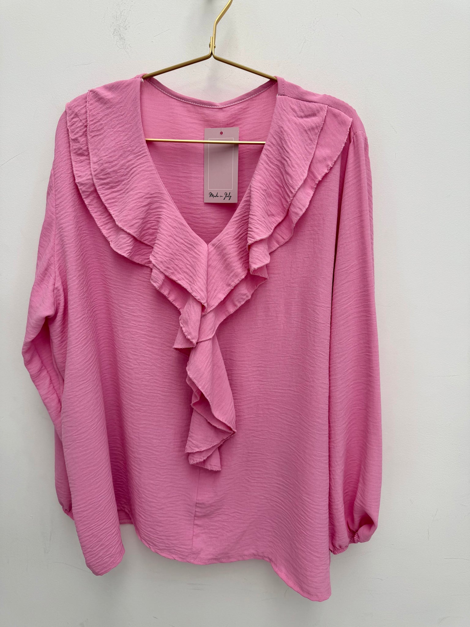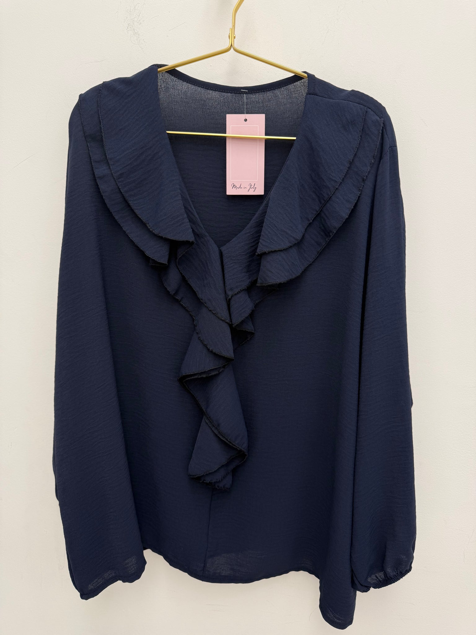 Stunning non crease ruffle neckline top with elasticated cuffs.