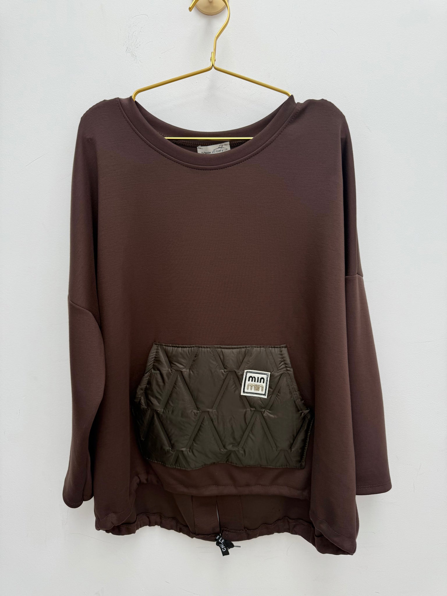 Gorgeous soft silky smooth stretch (light scuba fabric) dip back top with padded kangaroo pocket and adjustable drawcord.