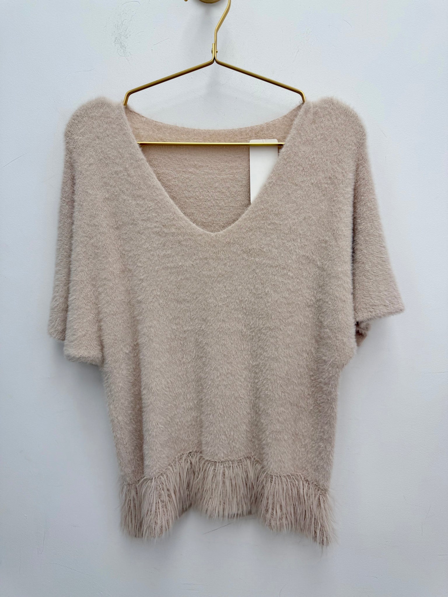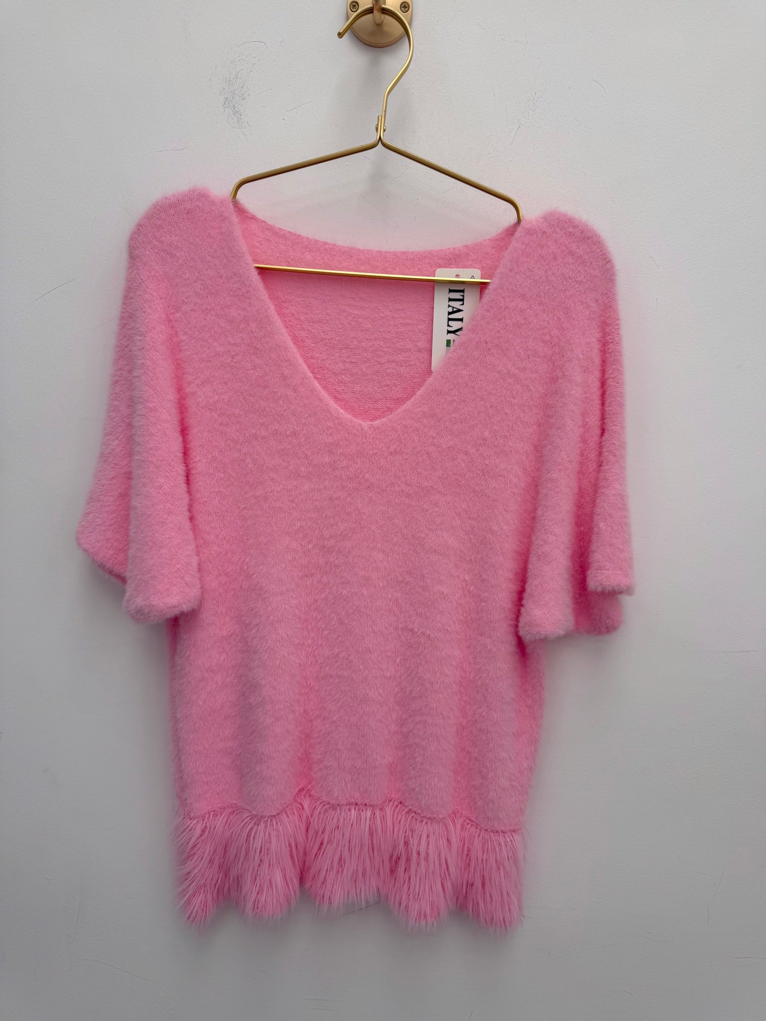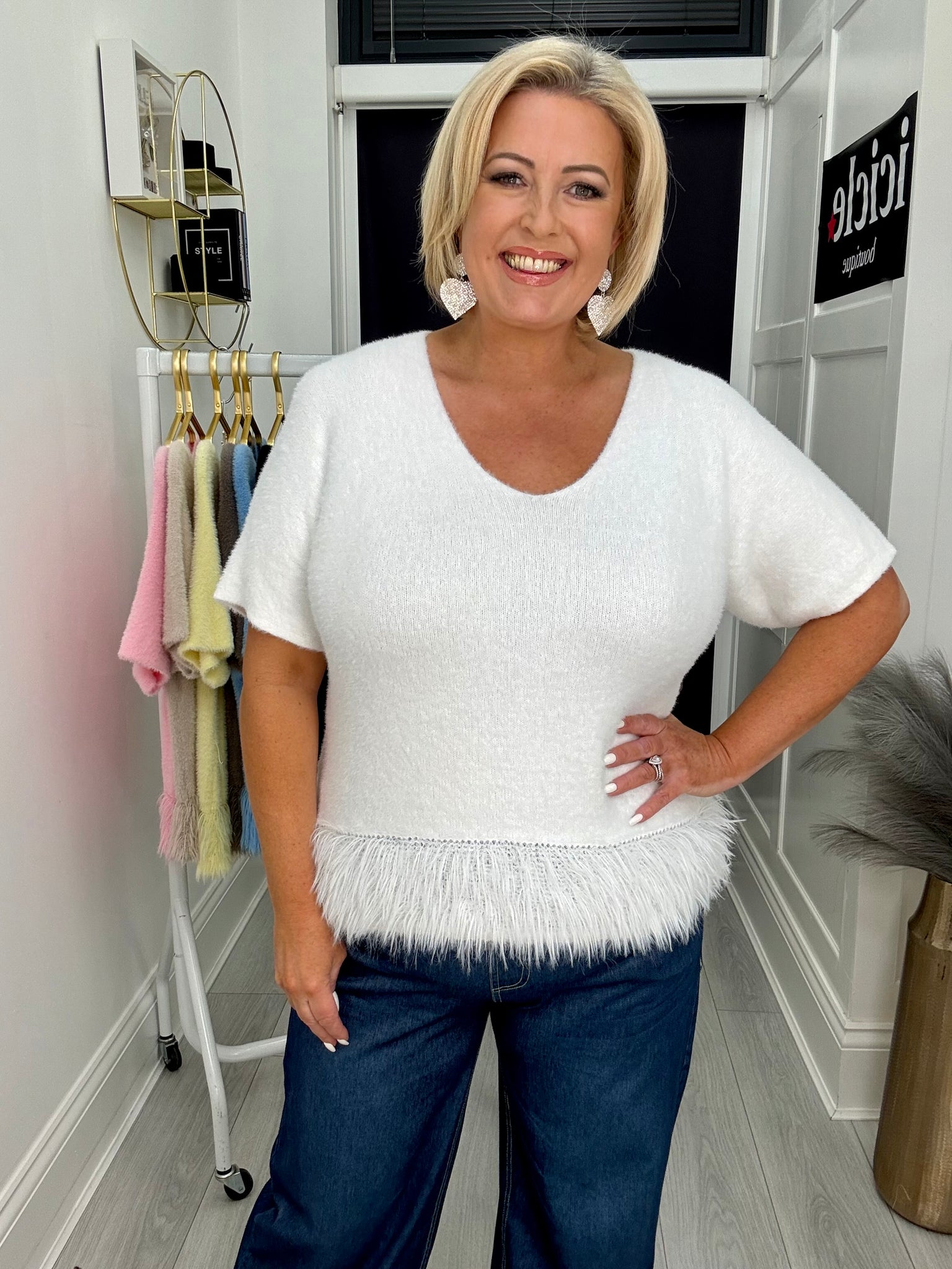 Stunning super soft stretch eyelash jumper with fluffy hemline.