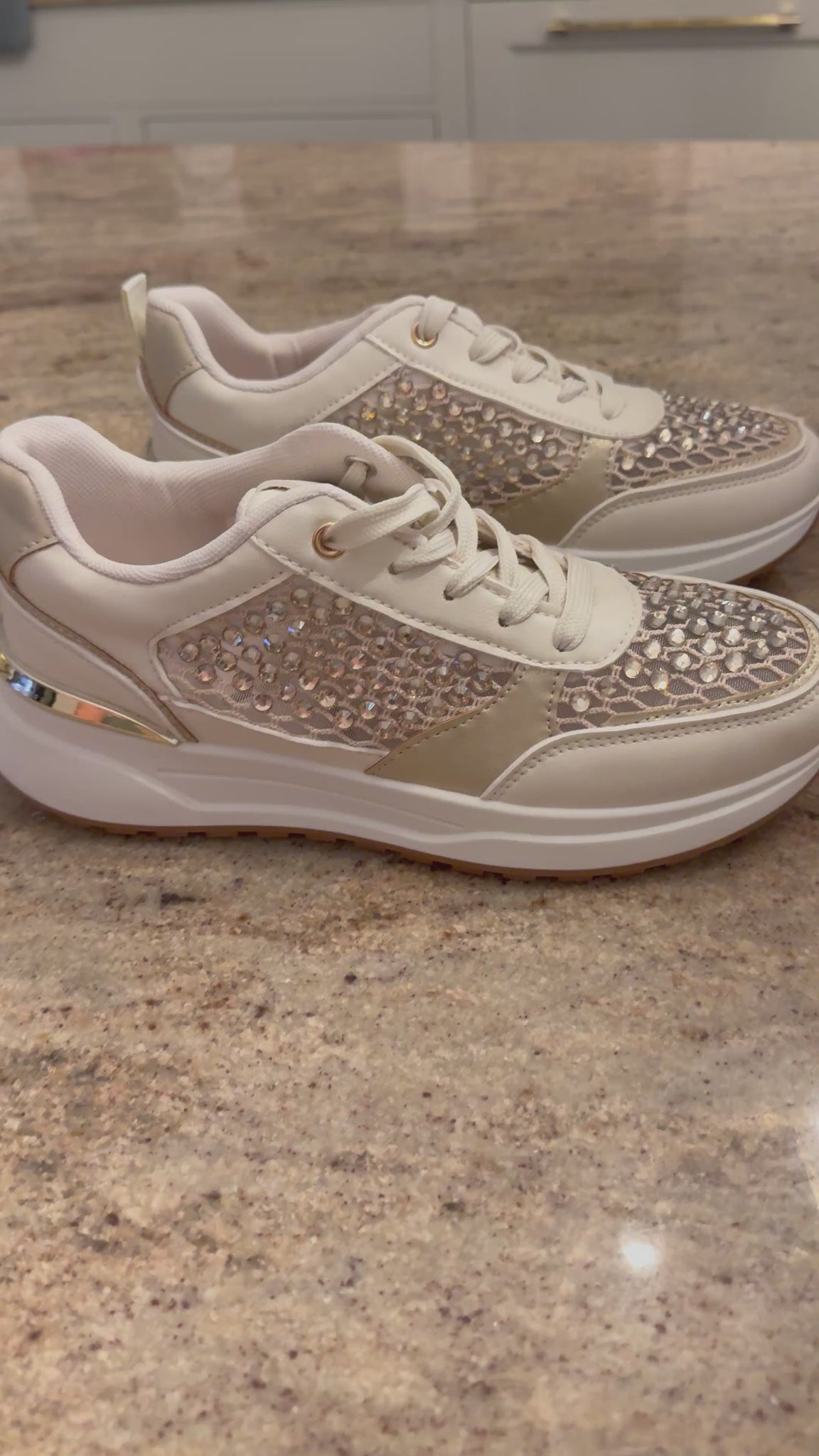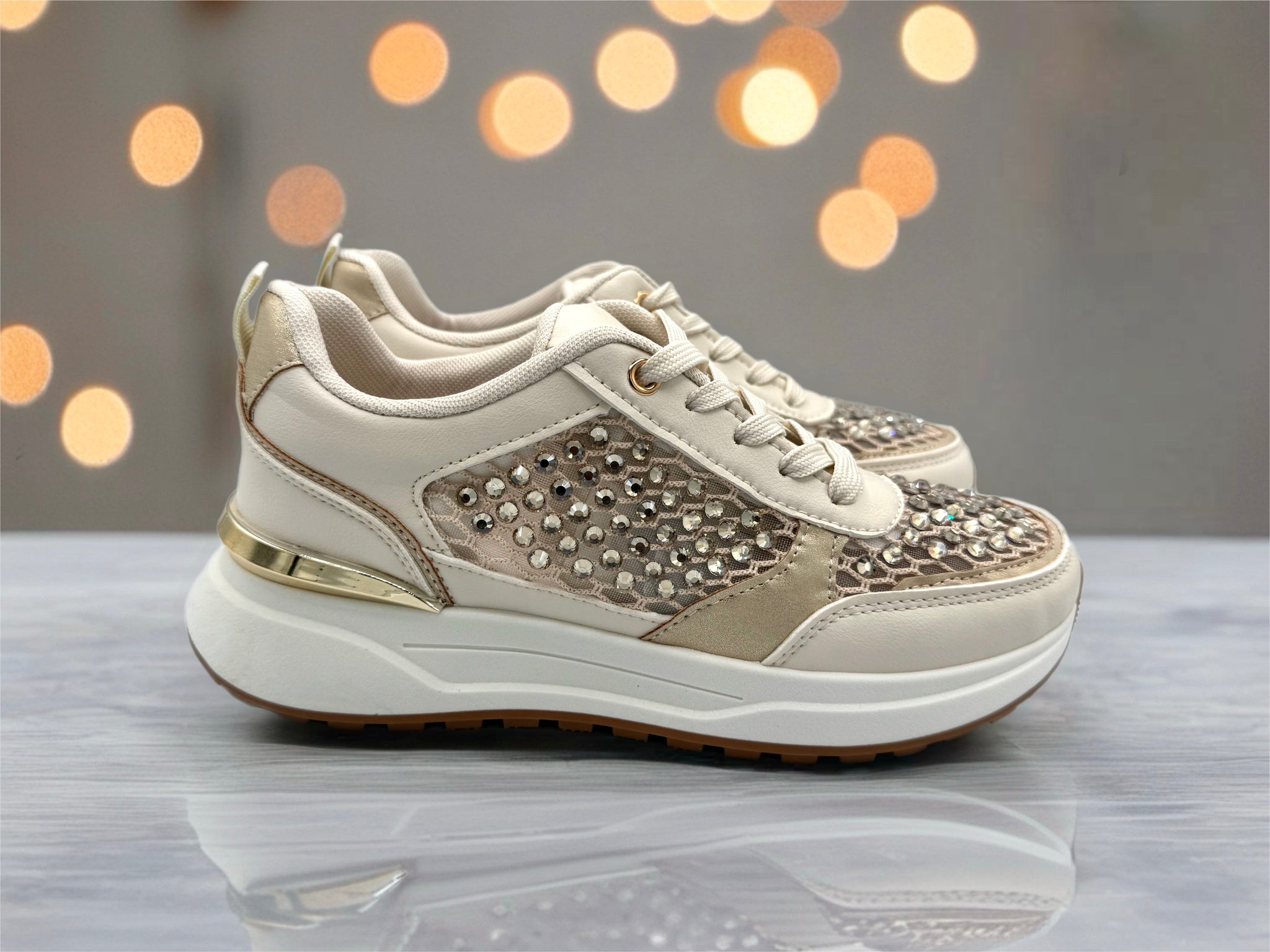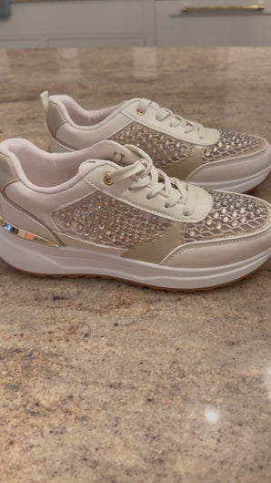 Stunning gold/beige trainers with beautiful champagne crystal mesh detail.