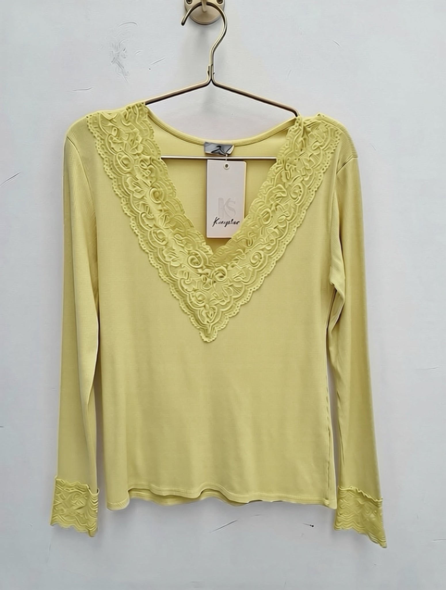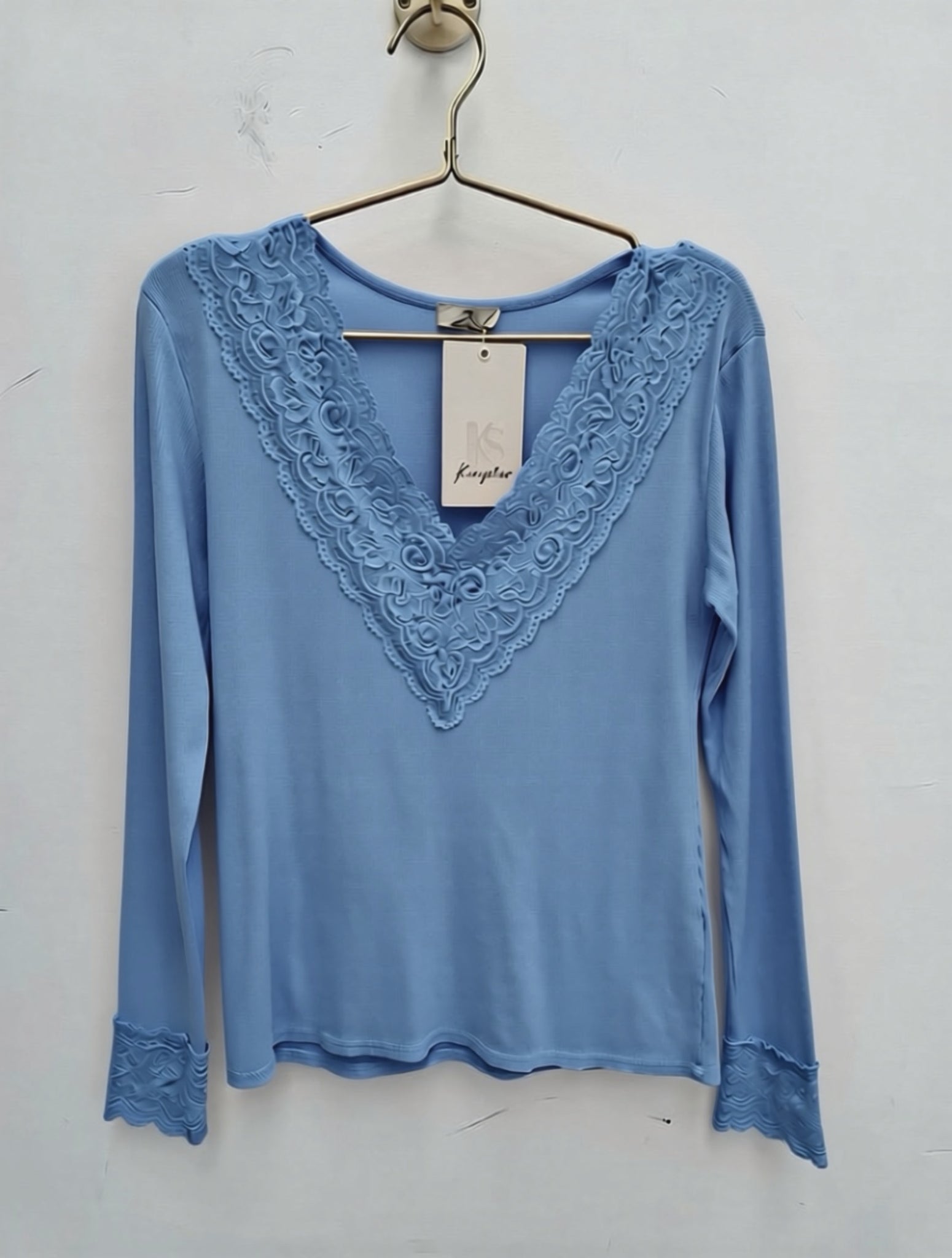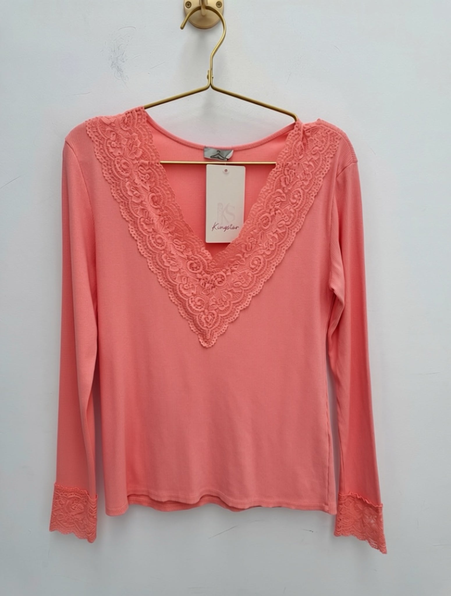 Stunning super stretch ribbed top with lace detail.