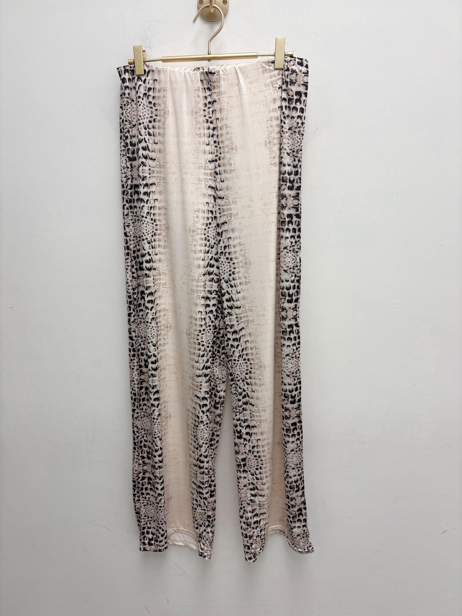 Stunning stretch trousers with matching chiffon top with subtle fine glitter lines and attached stretch lining.