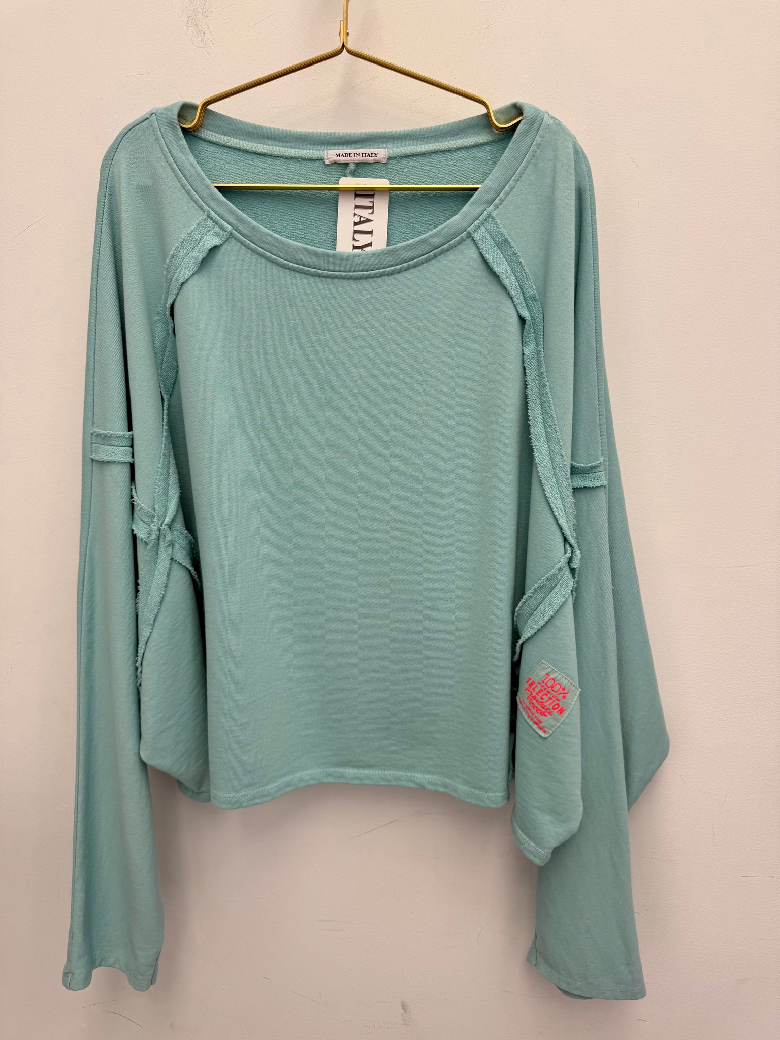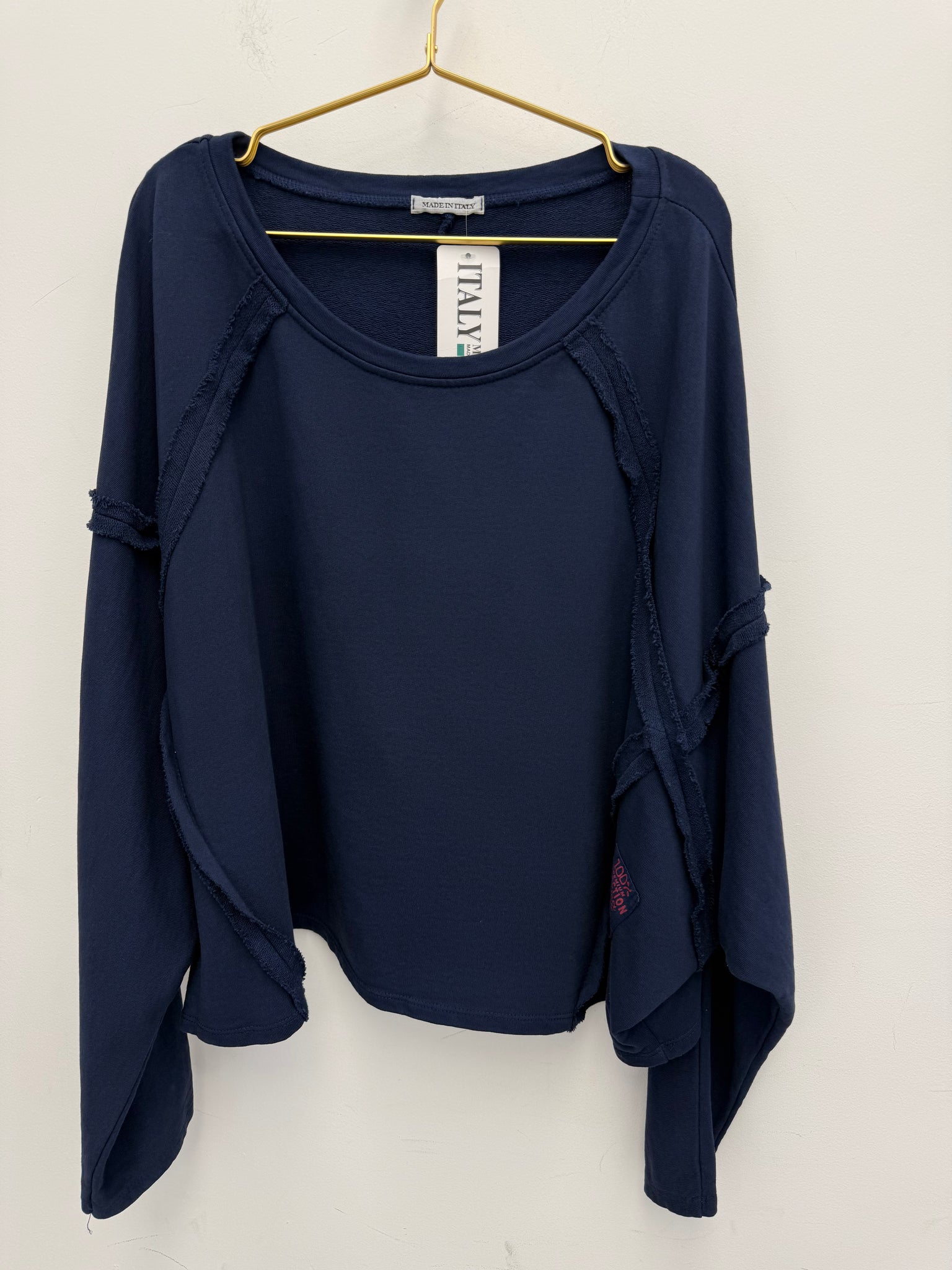 Gorgeous soft stretch cotton sweatshirt with exposed seams.